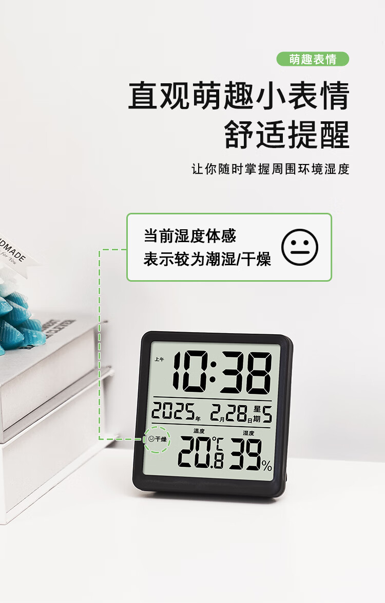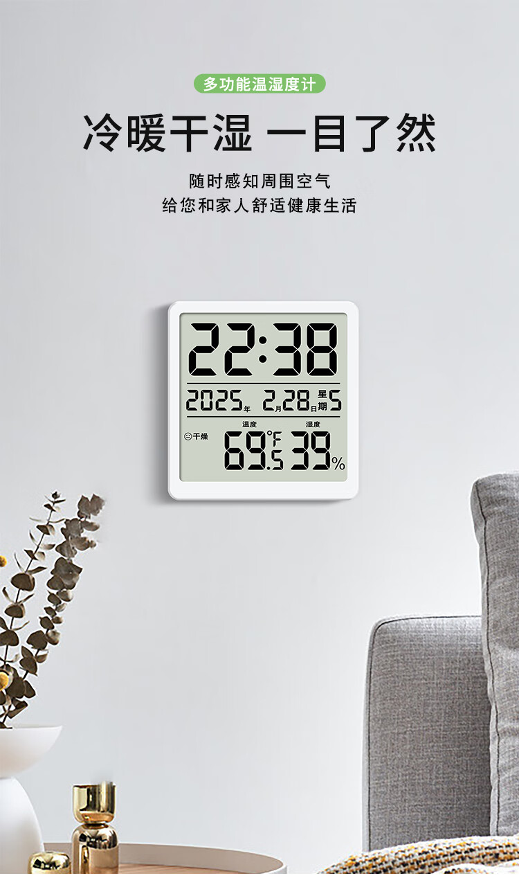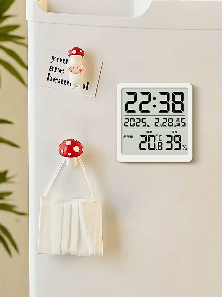 Yuewuhui Square Magnetic Clock | Simple and light electronic clock for refrigerator, can be adsorbed, hung or stood up, portable perpetual calendar, white, magnetic, displays time, year, month and day, comes with 1 AA dry battery