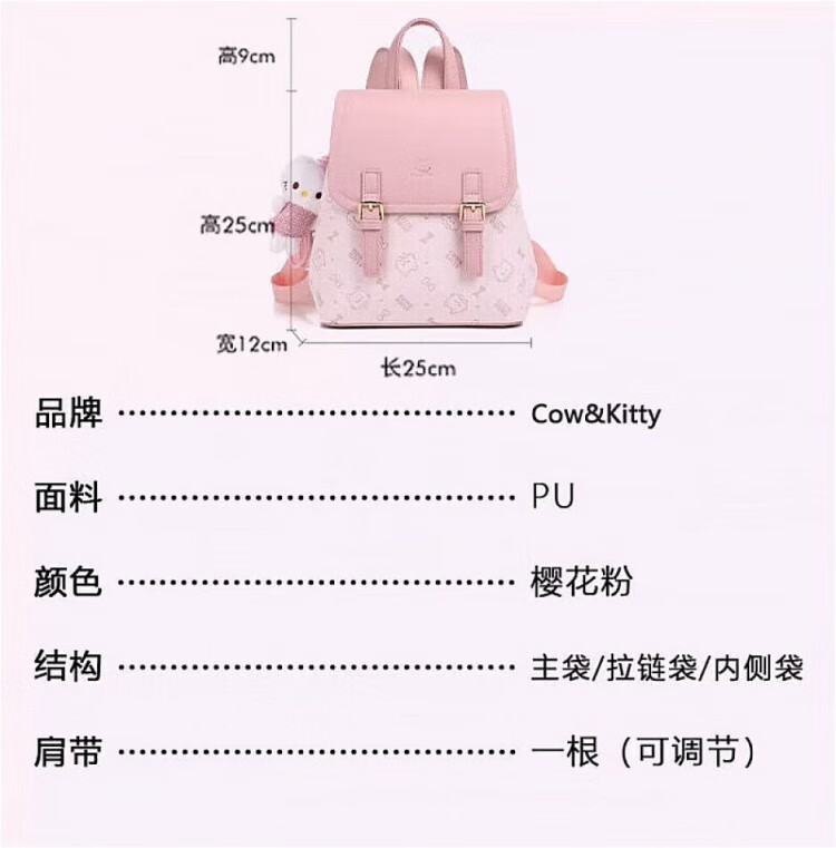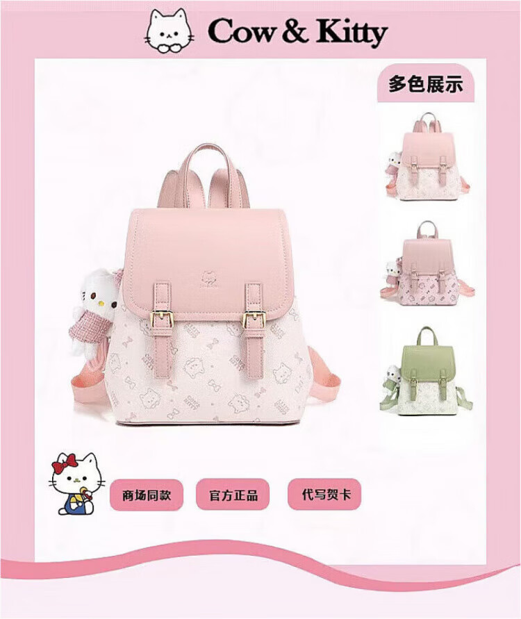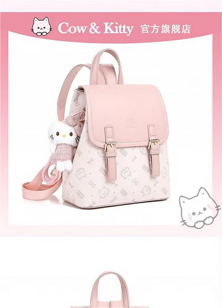 COW&KITTY Hello Kitty 2025 New Student Backpack Birthday Gift Girls Travel Backpack New Year Christmas Gift Sakura Pink Pendant Gift Box 25cm-12cm-25cm