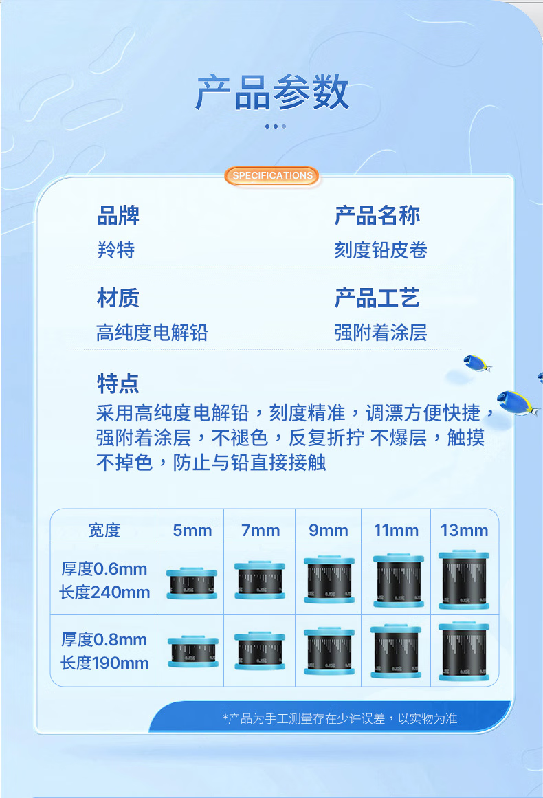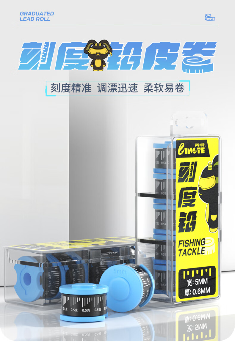 Lingte thickened bulk fishing lead roll, environmentally friendly scaled lead, competitive gram lead, fast lead fishing gear supplies, scaled lead set, 5 pieces in box, 5mm wide, 0.6mm thick
