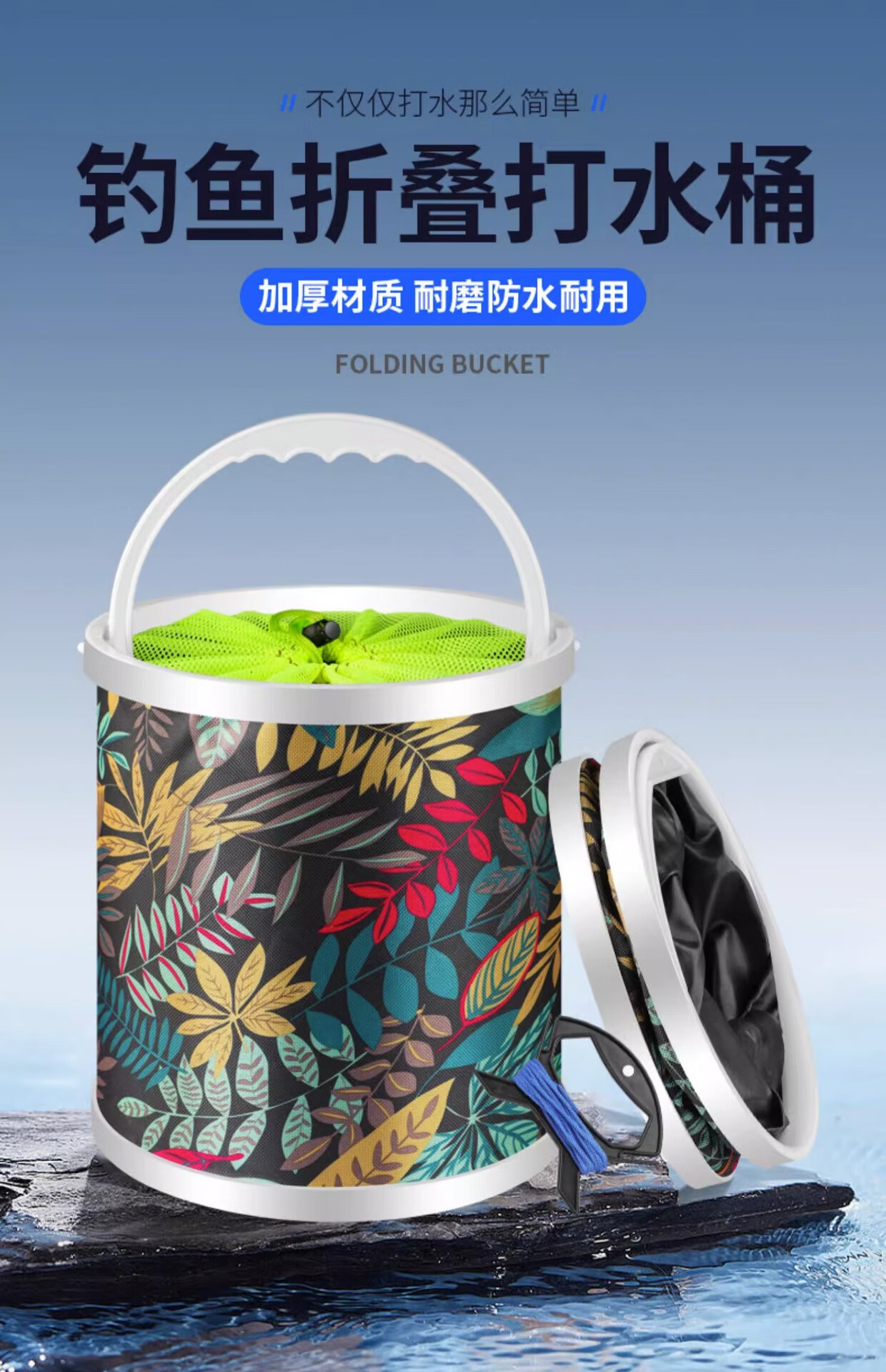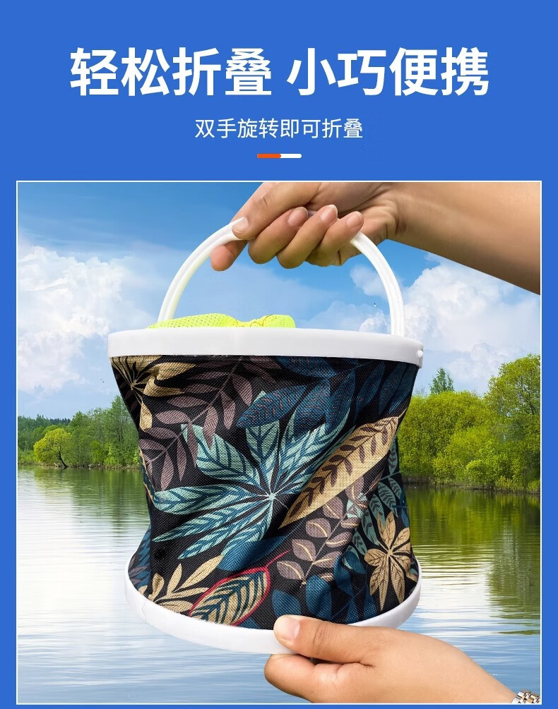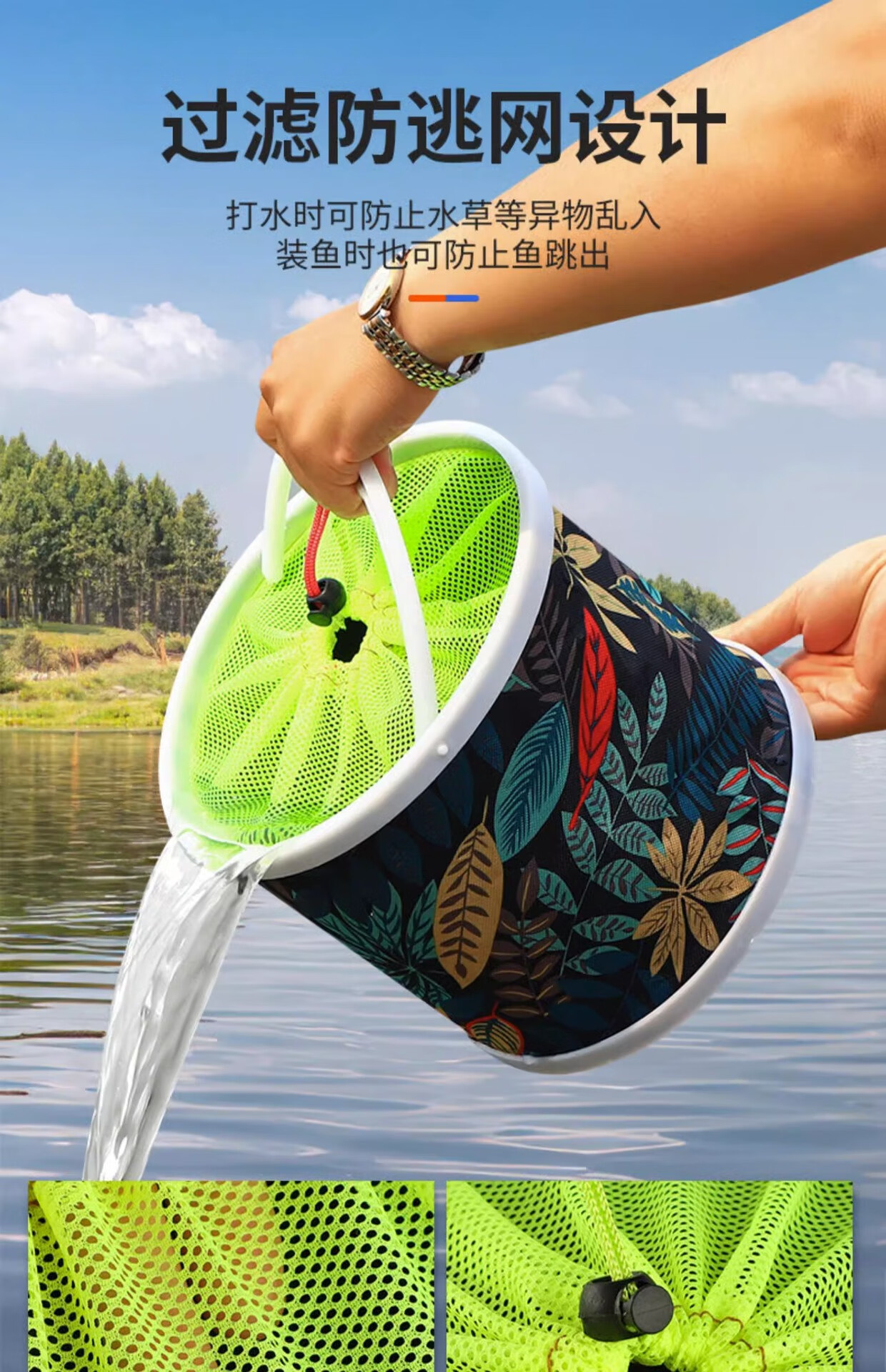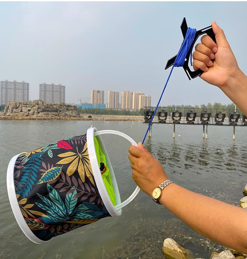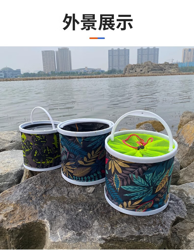 Fishing foldable water bucket, fish bucket, live fish box, multi-function with rope anti-jump net, small fish bucket, fishing gear, fish protection bucket 5L folding bucket with anti-jump net + free water rope