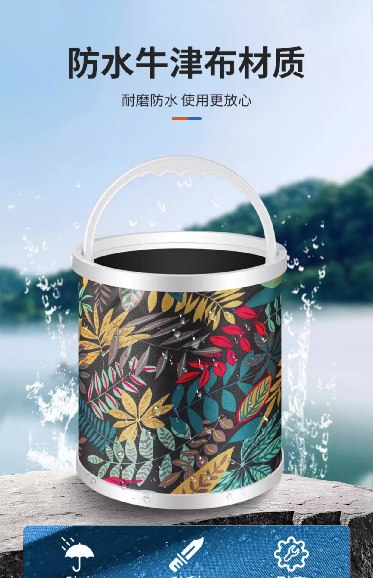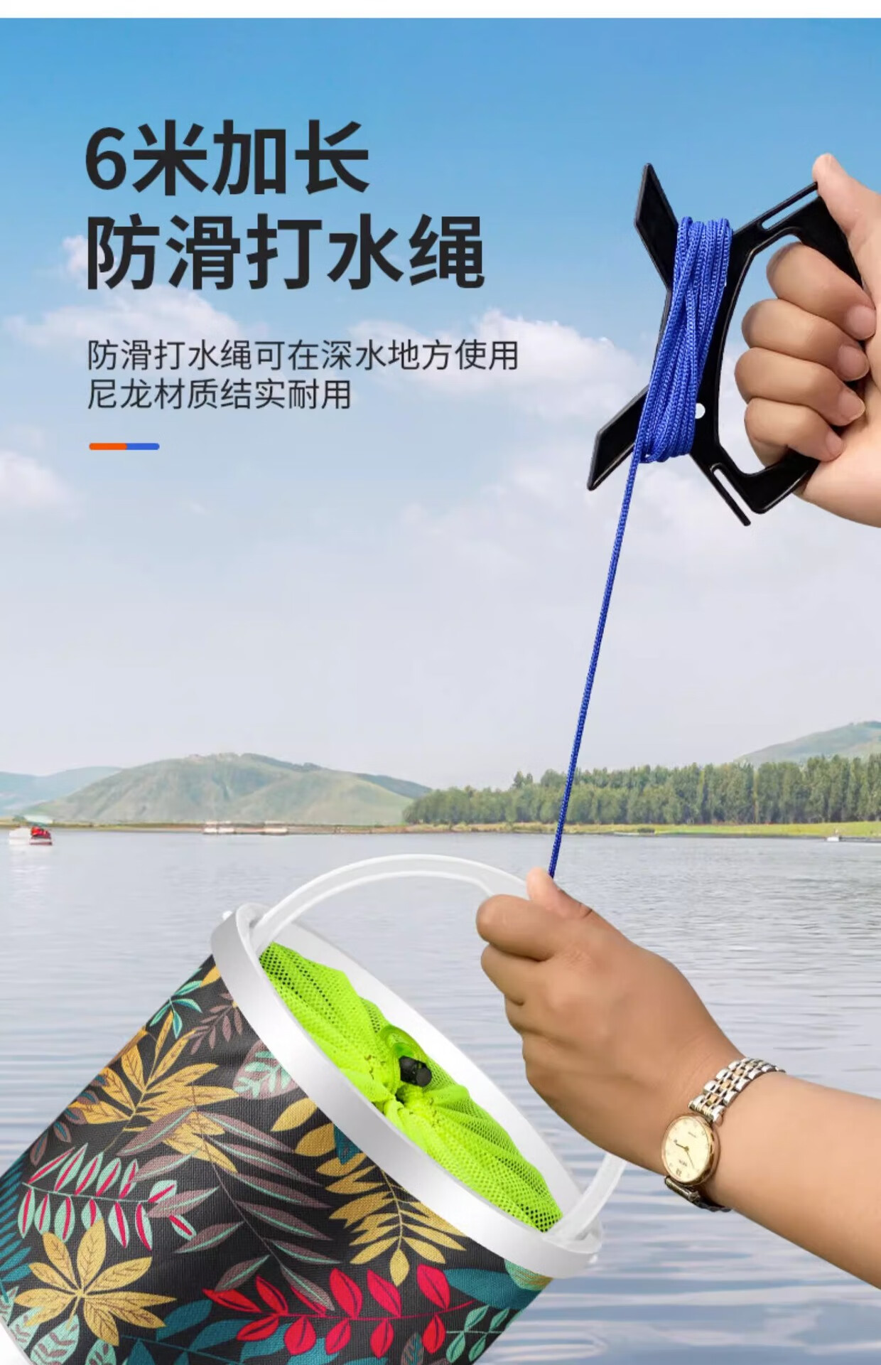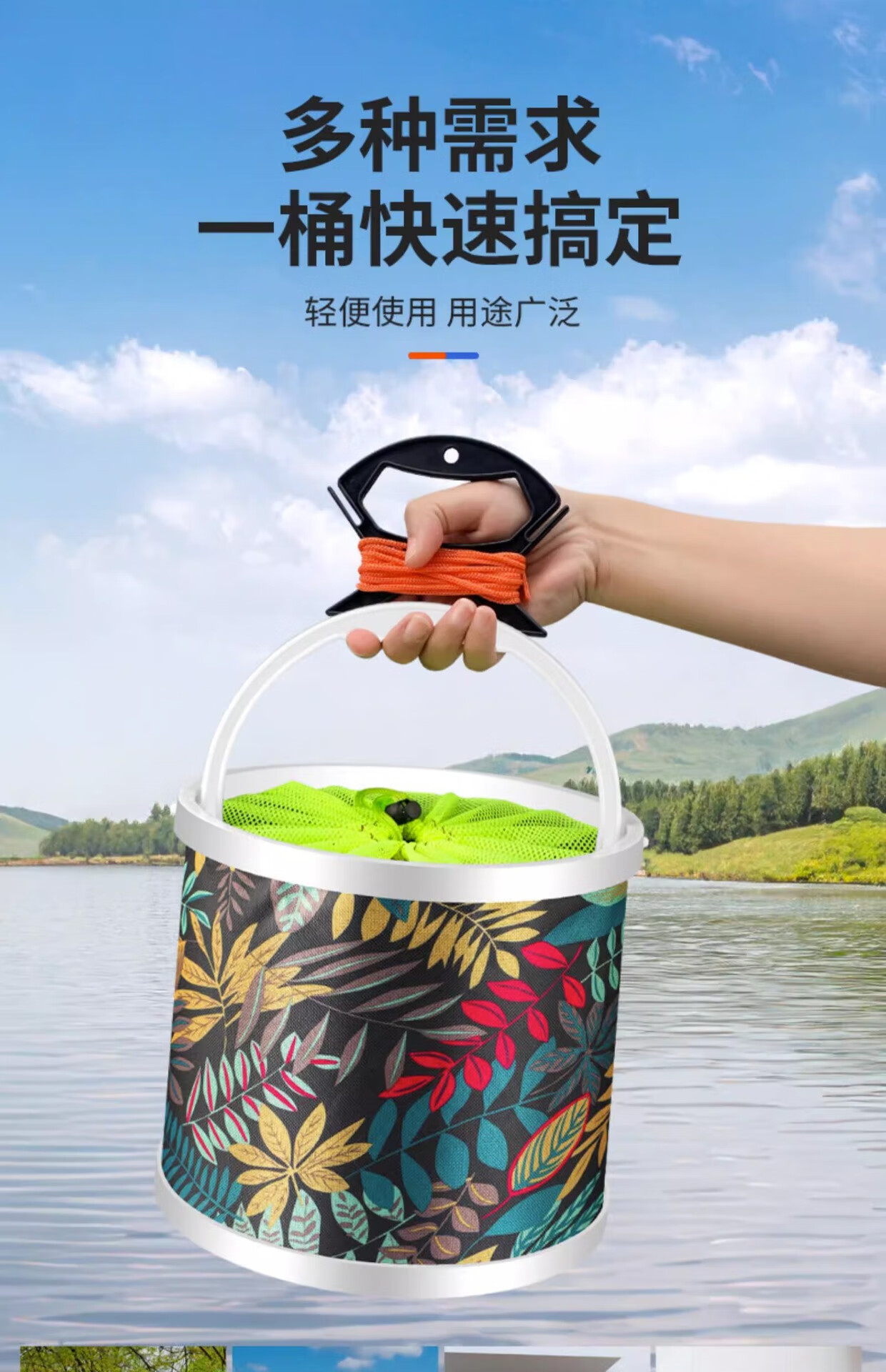 Fishing foldable water bucket, fish bucket, live fish box, multi-function with rope anti-jump net, small fish bucket, fishing gear, fish protection bucket 5L folding bucket with anti-jump net + free water rope