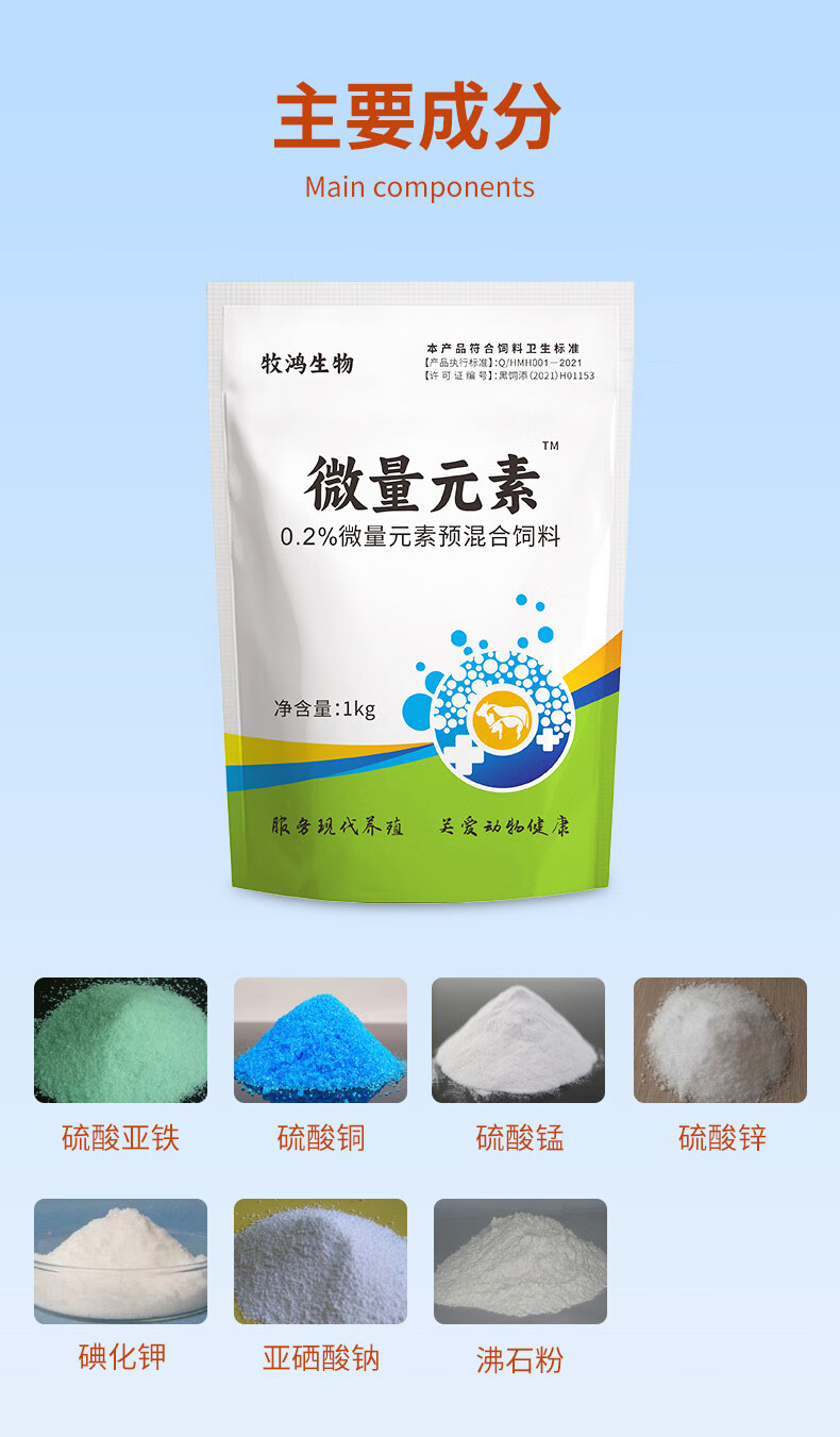Compound trace elements for pigs, cattle, sheep, chickens, ducks and goose 0.5% premix additive copper sulfate ferrous manganese zinc magnesium feed trace elements 1 bag