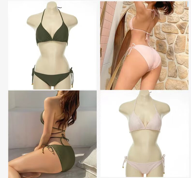 2025 new swimsuit for women summer sexy three-point bikini strap art test European and American beach vacation hot spring black L