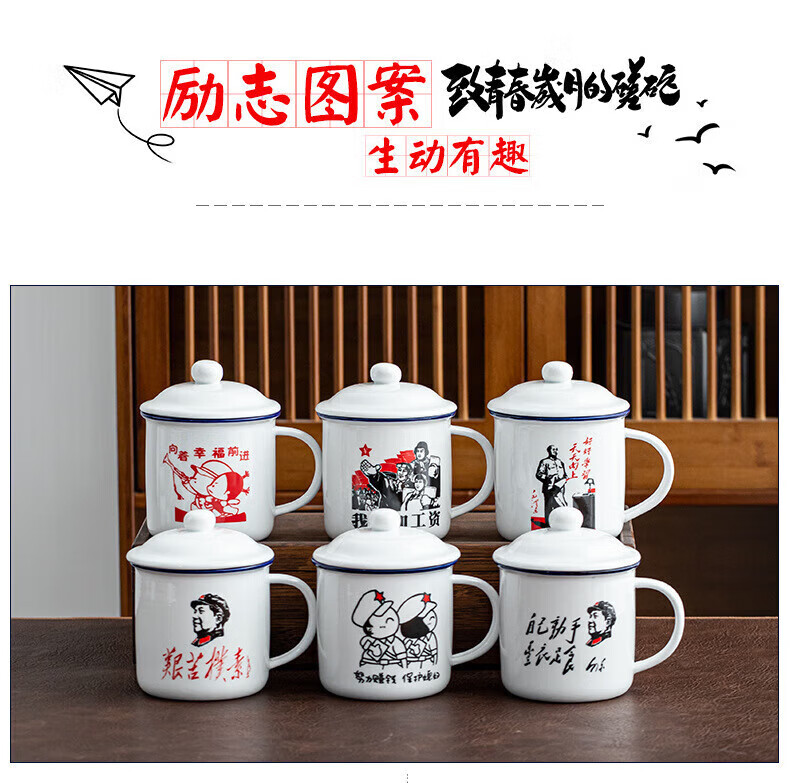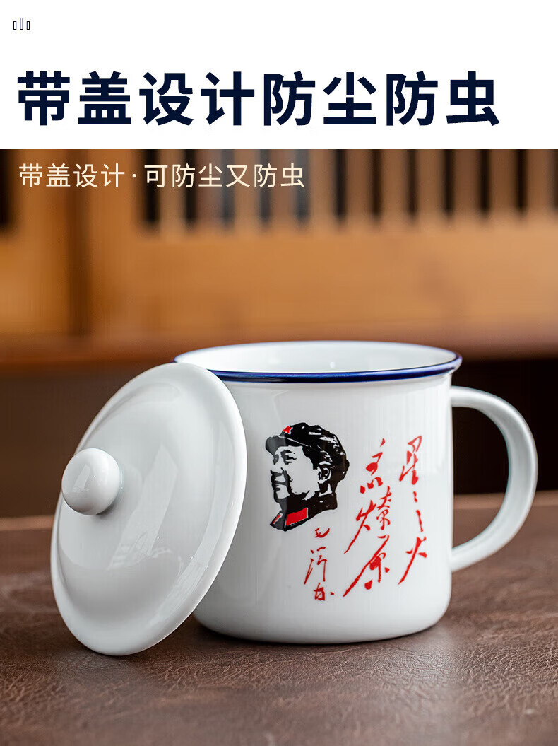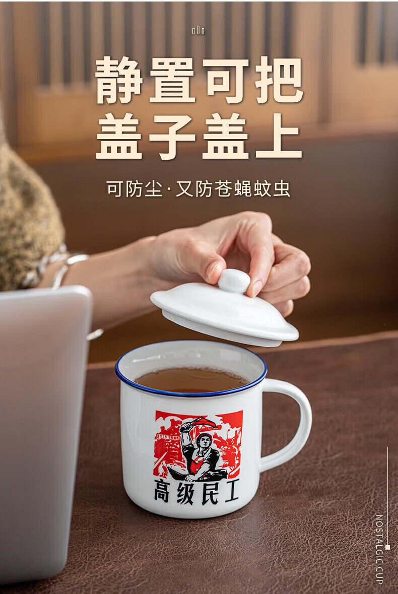 Ceramic retro nostalgic mug with lid large capacity water cup boys old-fashioned tea jar classic old cadre tea cup serving the people 450ml 401-500ml