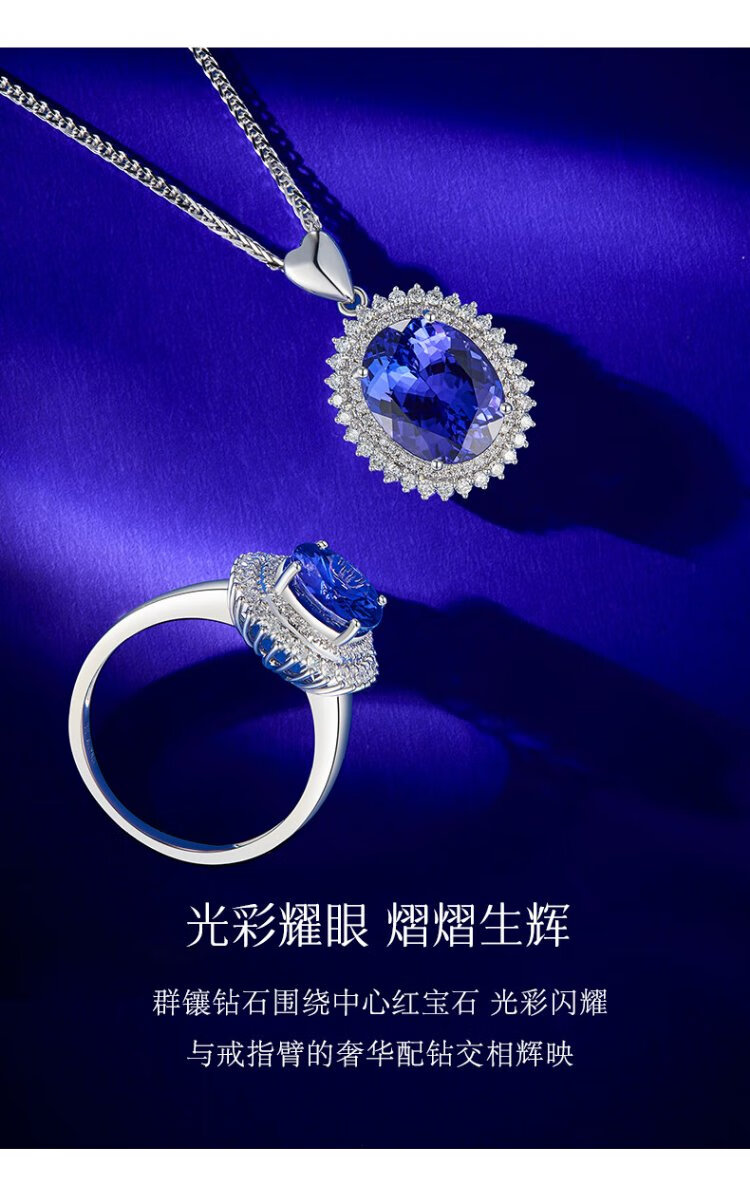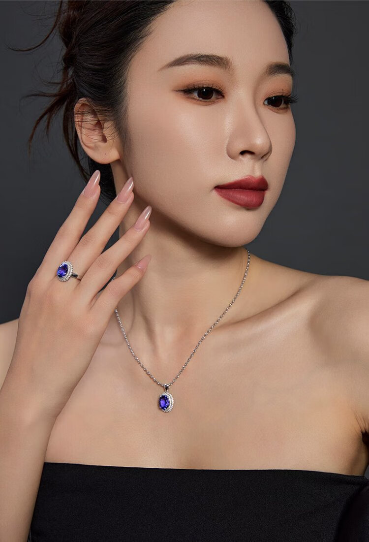 Yicai Mijing Collection Natural Gemstone Tanzanite Ring Neck Accessory Women's 18K Gold Inlaid Necklace Pendant 7.1 Carats Royal Blue (Excluding Chain)
