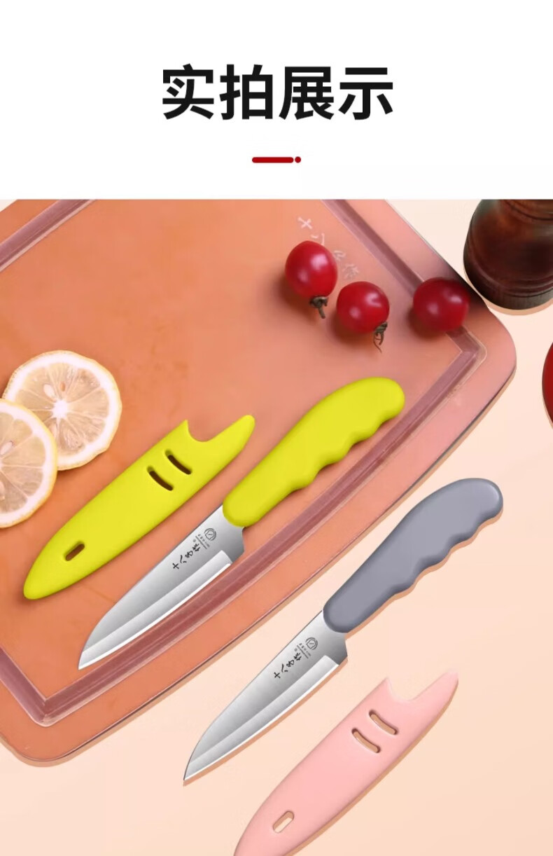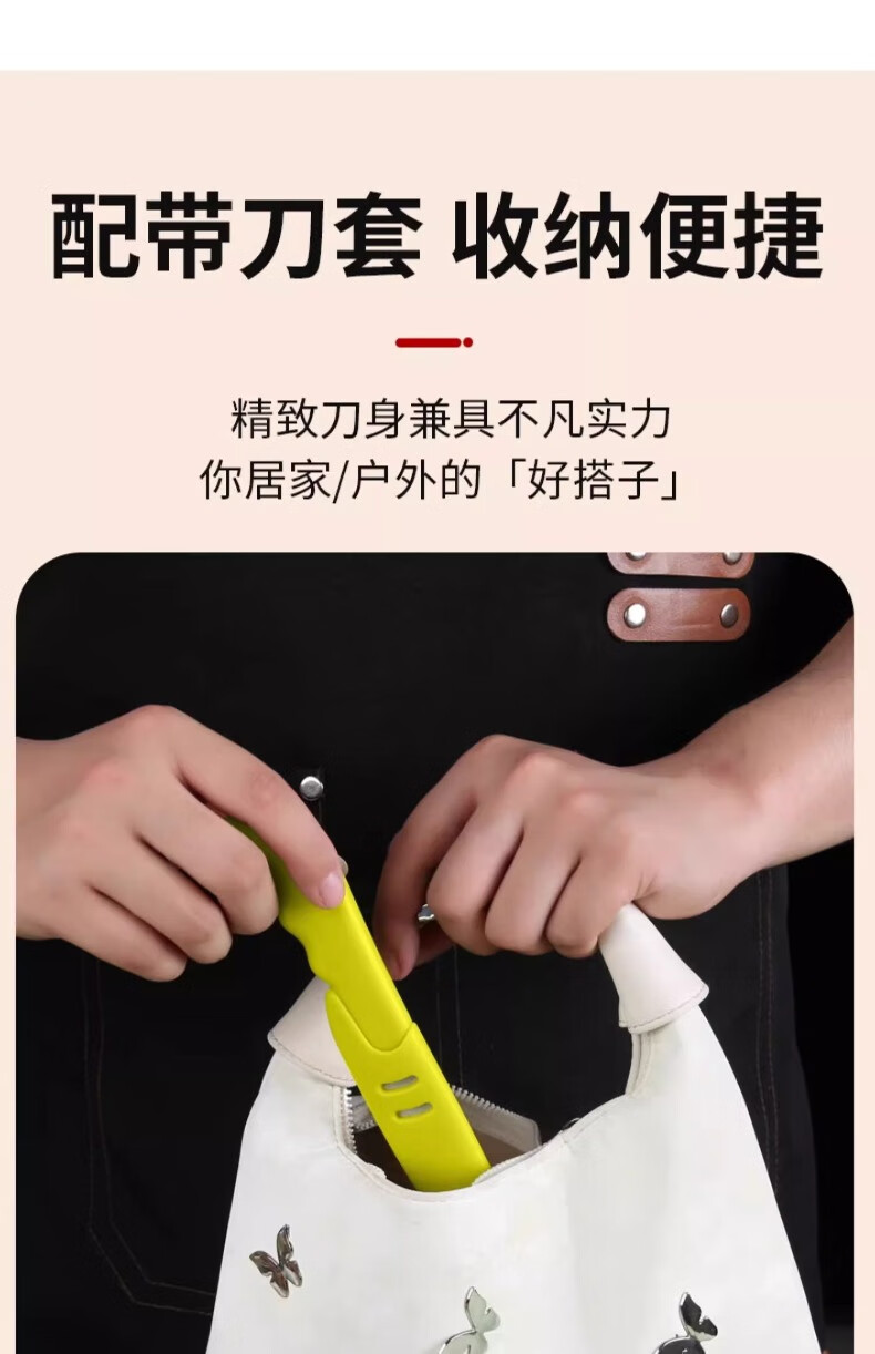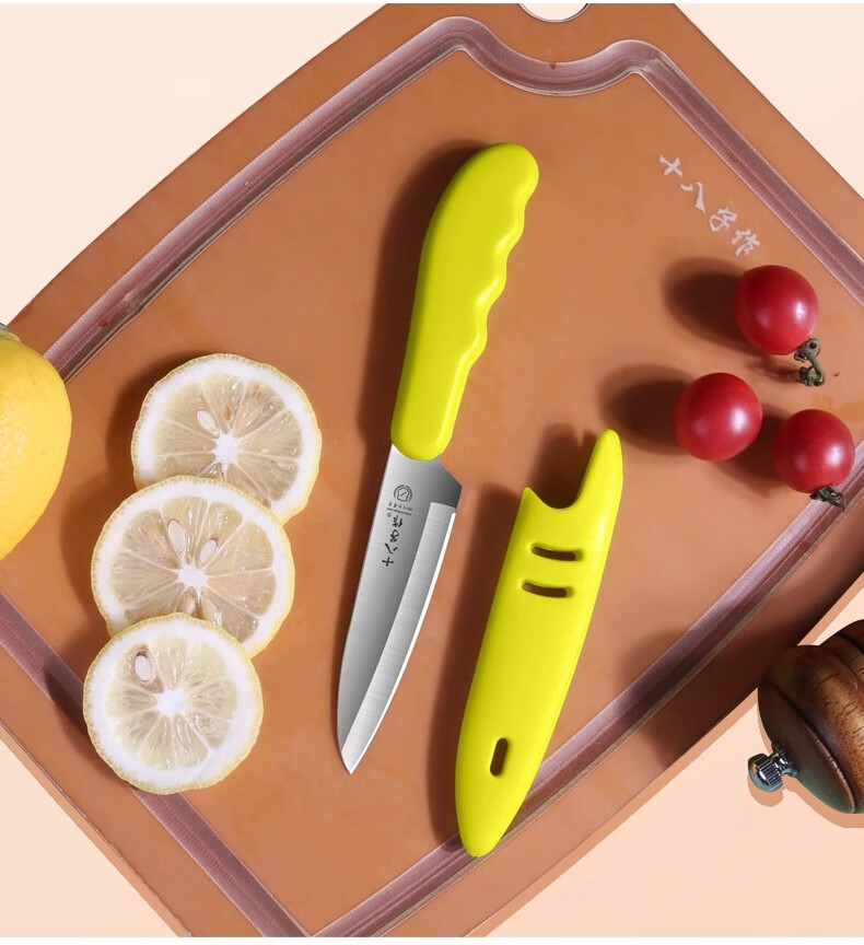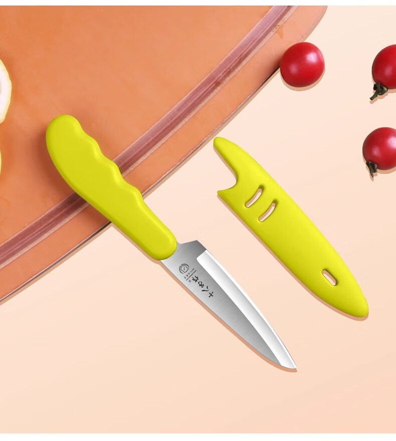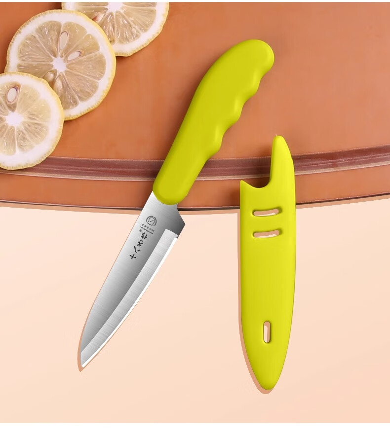 Fruit knife household stainless steel multi-purpose knife melon and fruit knife kitchen multi-functional commercial meat slicing knife chef's knife yellow with knife cover 1