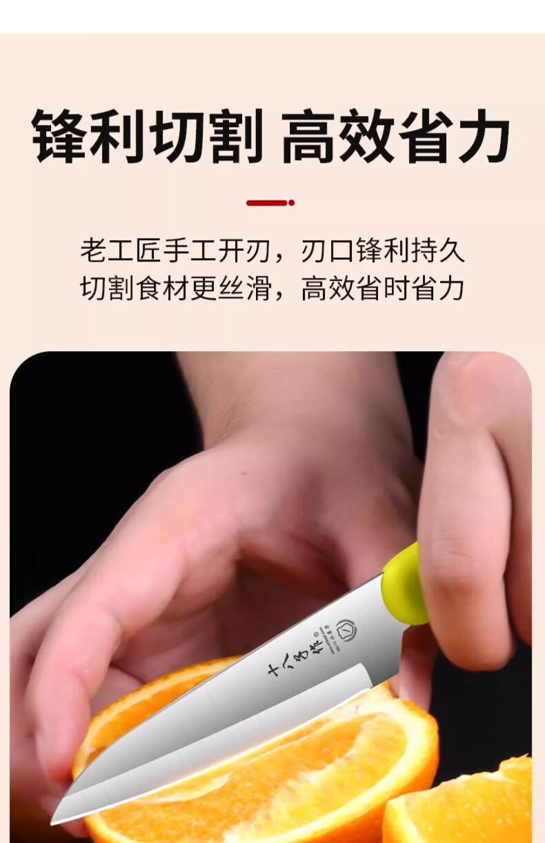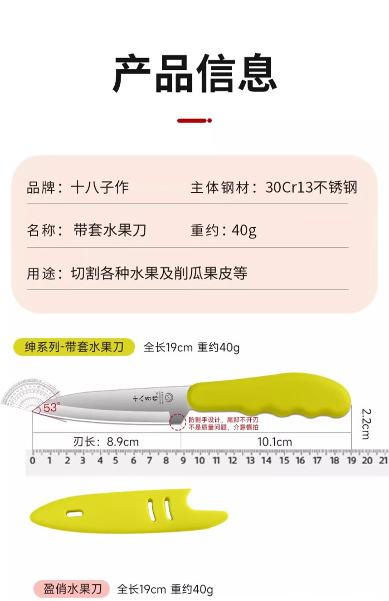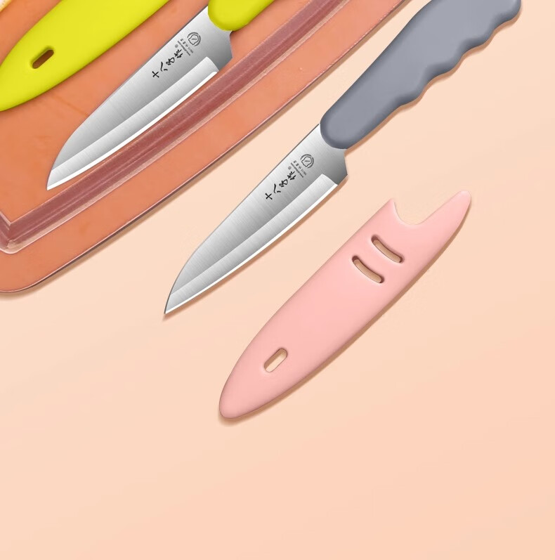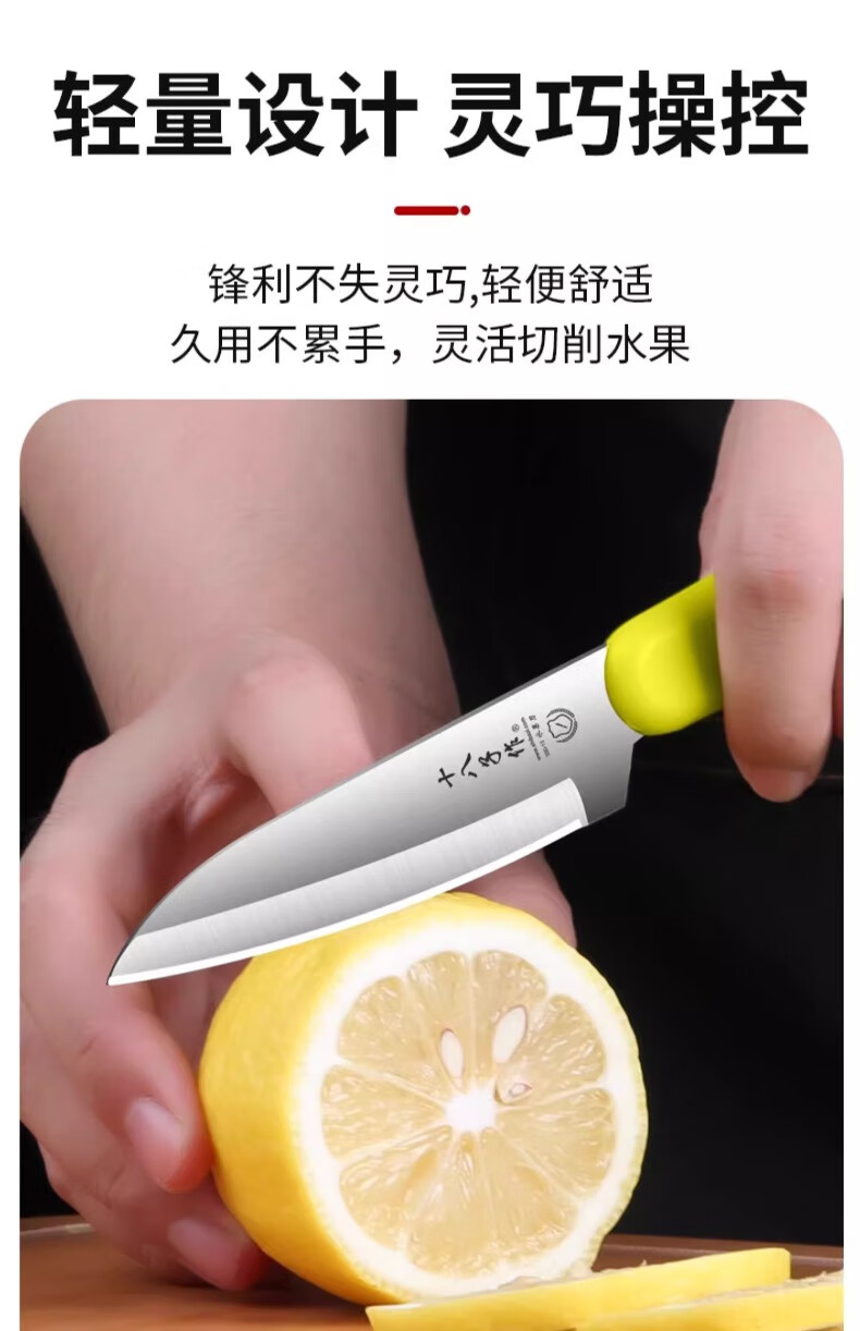 Fruit knife household stainless steel multi-purpose knife melon and fruit knife kitchen multi-functional commercial meat slicing knife chef's knife yellow with knife cover 1