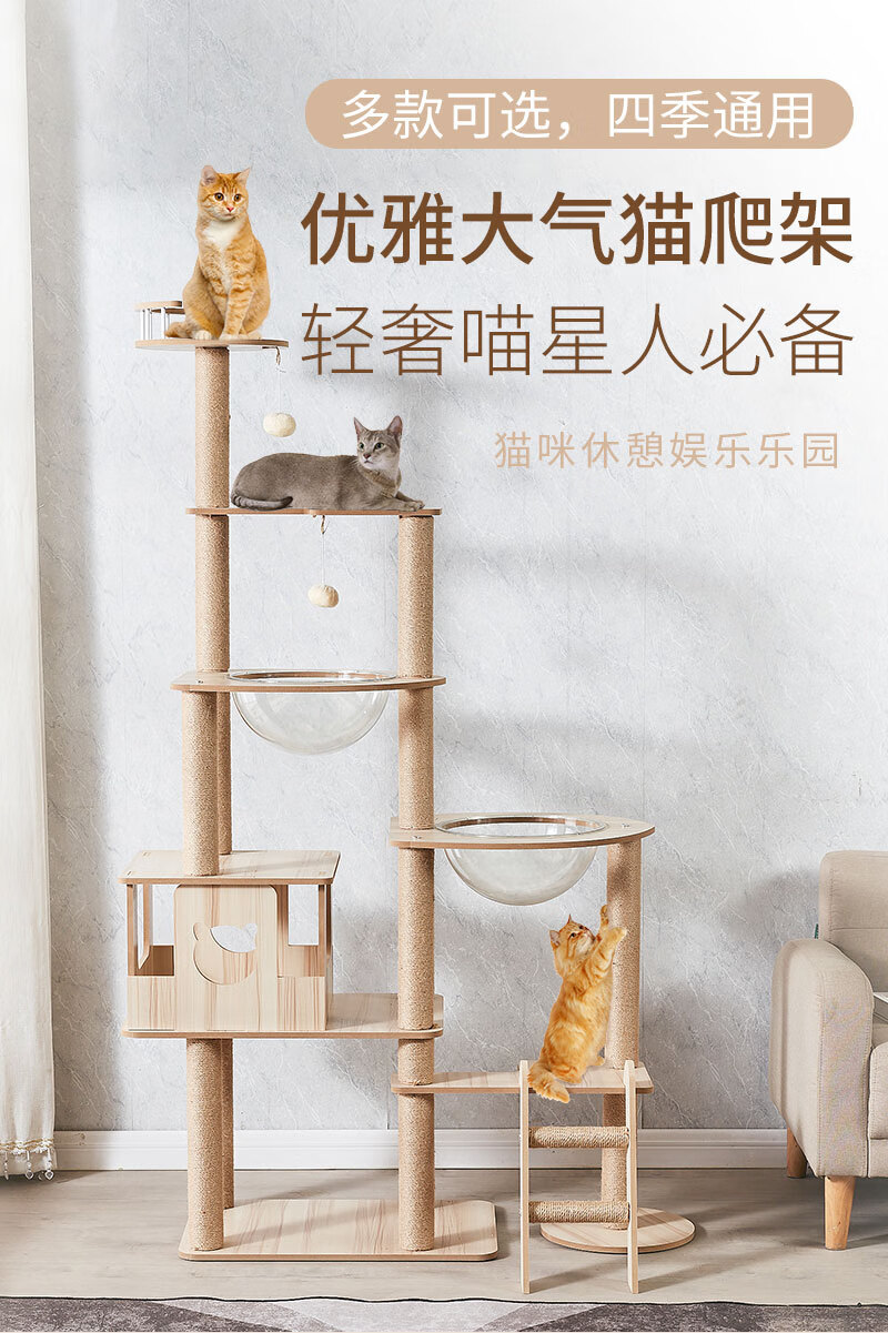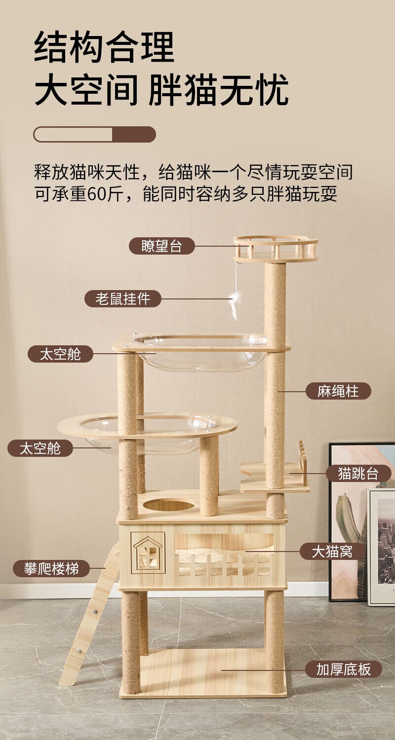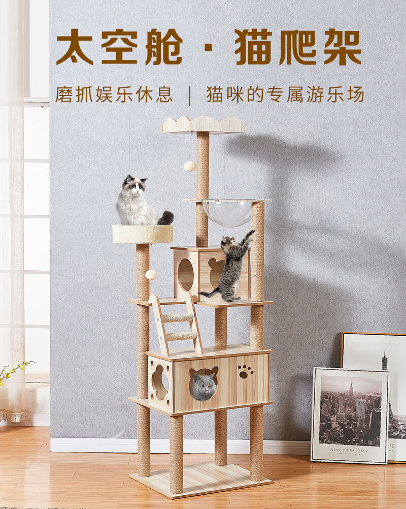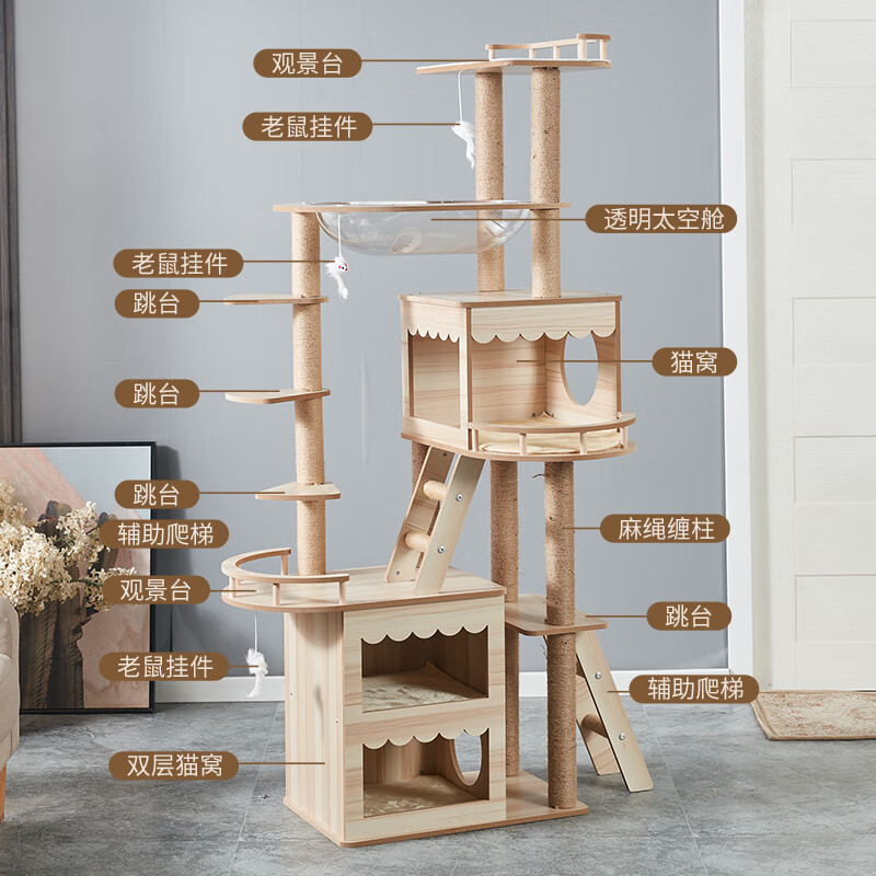 JD Logistics Emperor Fatty Tongtianzhu Cat Climbing Frame Cat Nest Integrated Space Capsule Cat Supplies K6102 Large Double Cabin Large Space Height 165cm