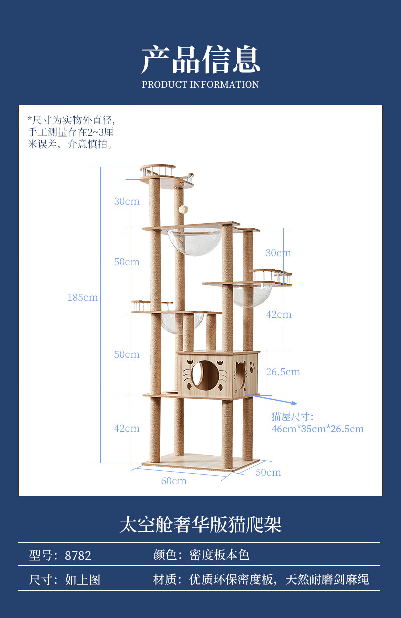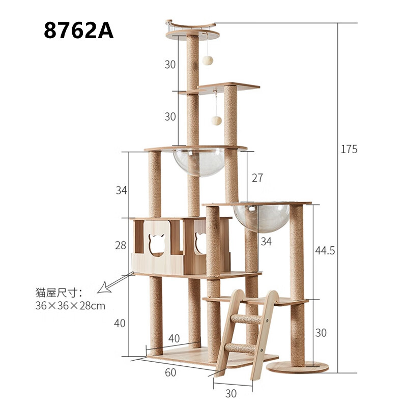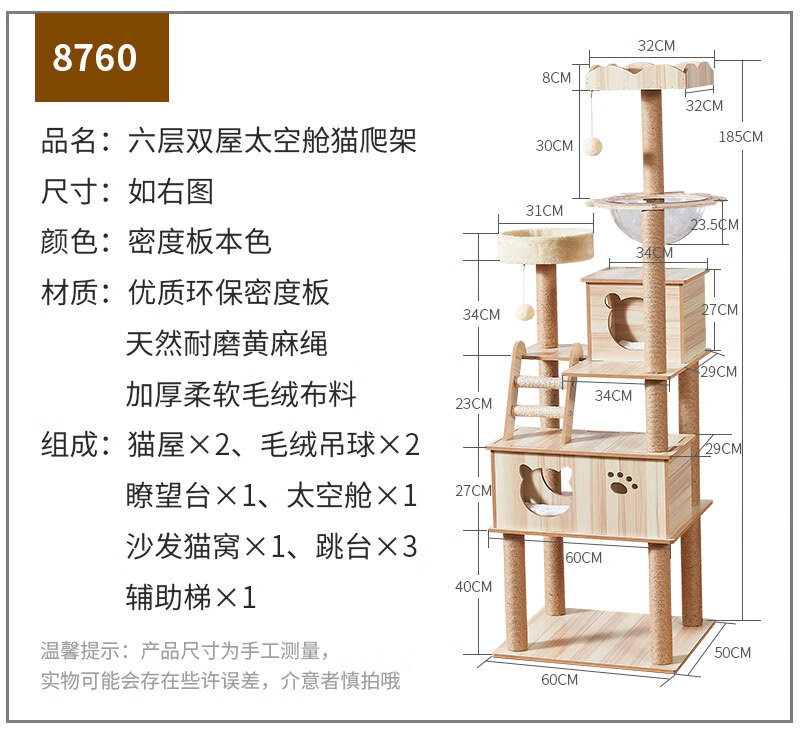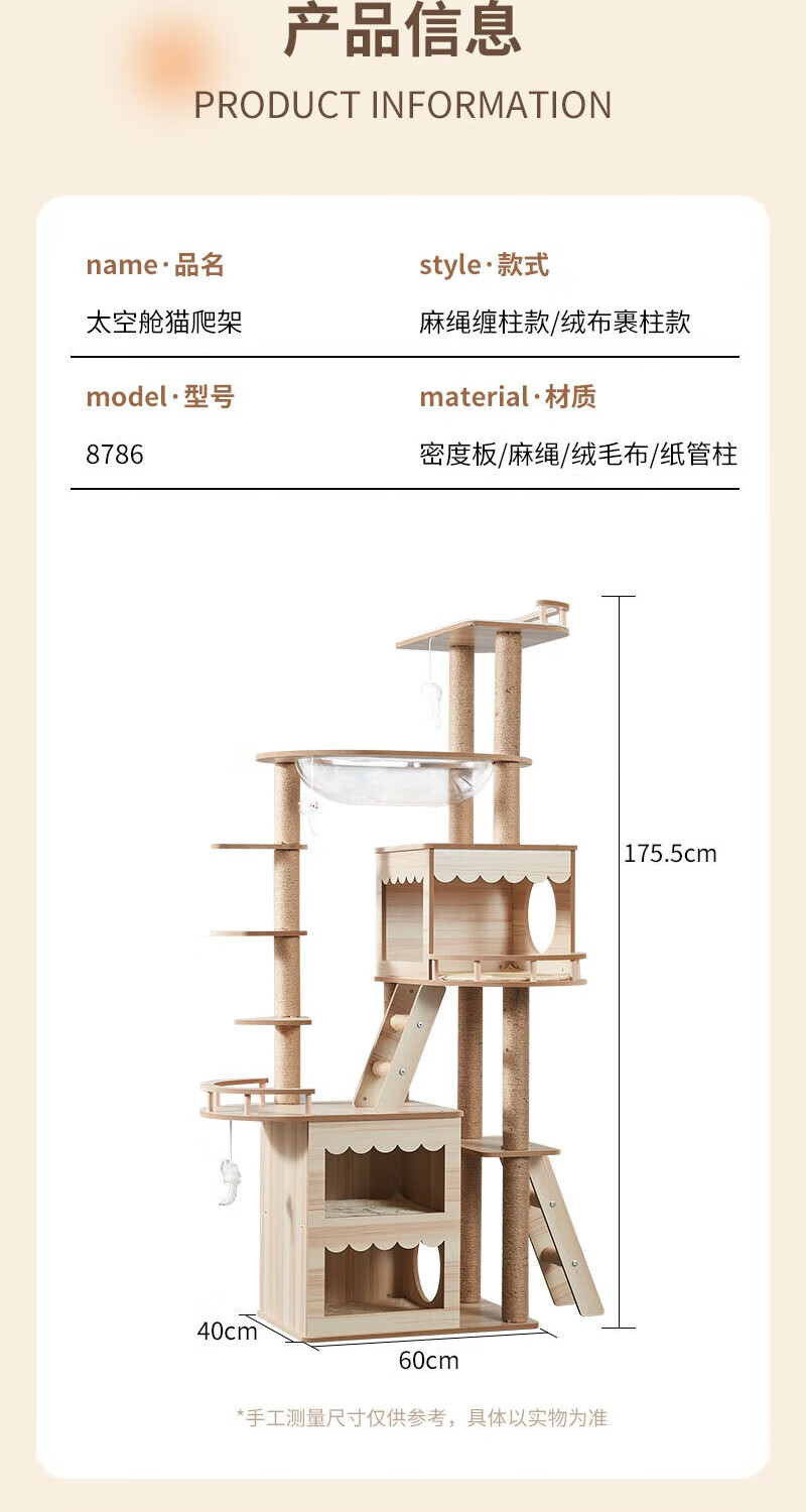 JD Logistics Emperor Fatty Tongtianzhu Cat Climbing Frame Cat Nest Integrated Space Capsule Cat Supplies K6102 Large Double Cabin Large Space Height 165cm