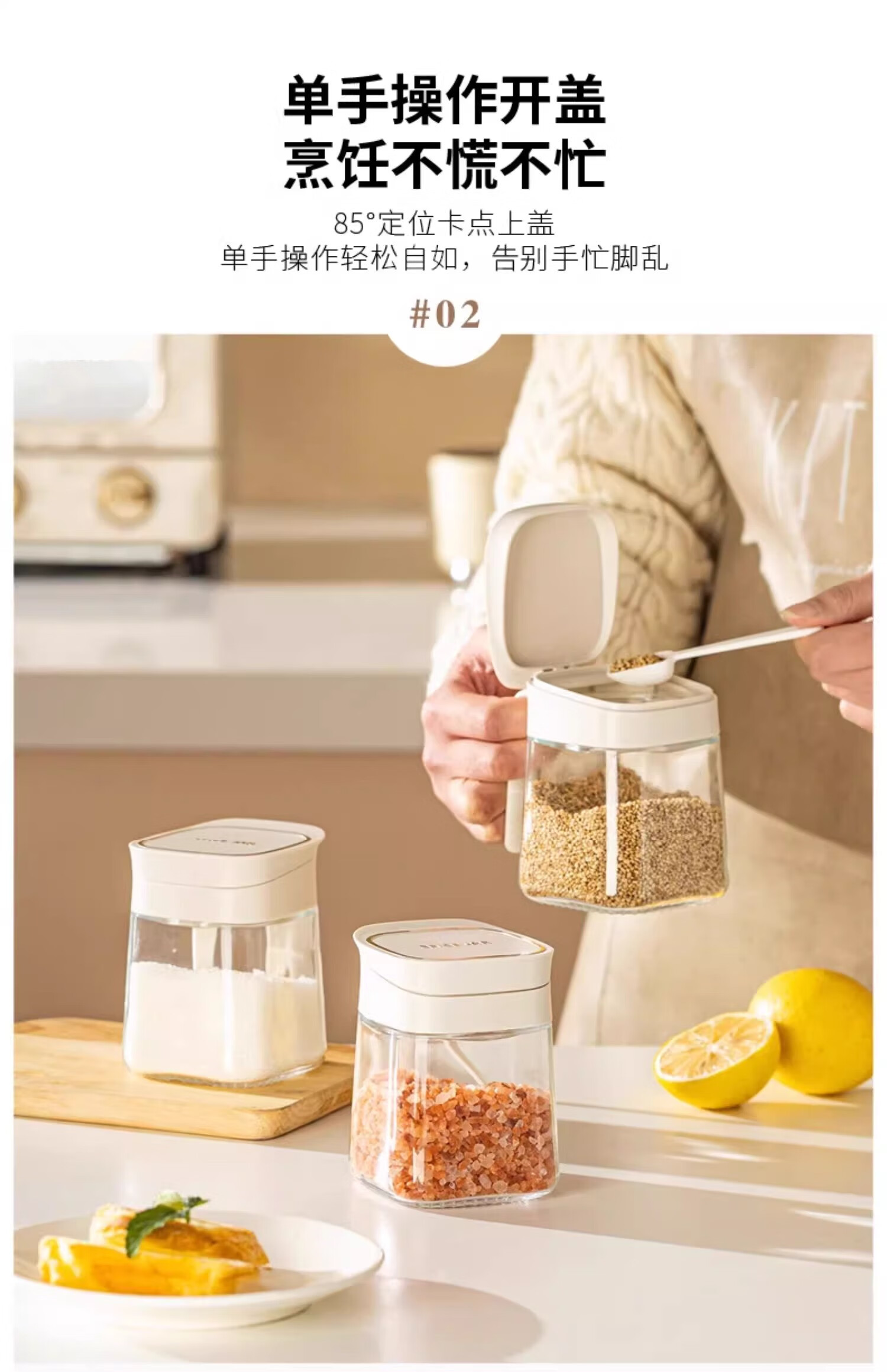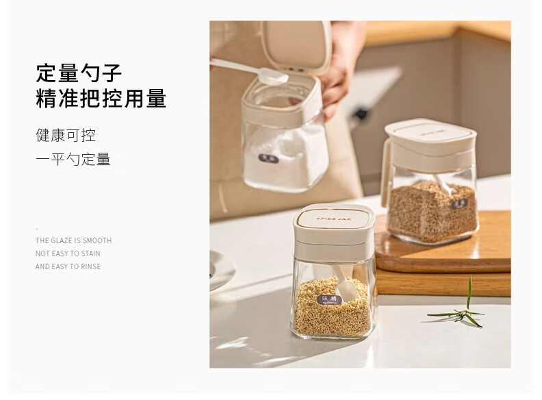 Modern housewife replacement seasoning box set kitchen storage box jar seasoning bottle MSG salt shaker seasoning warm green 1 pack with free seasoning spoon