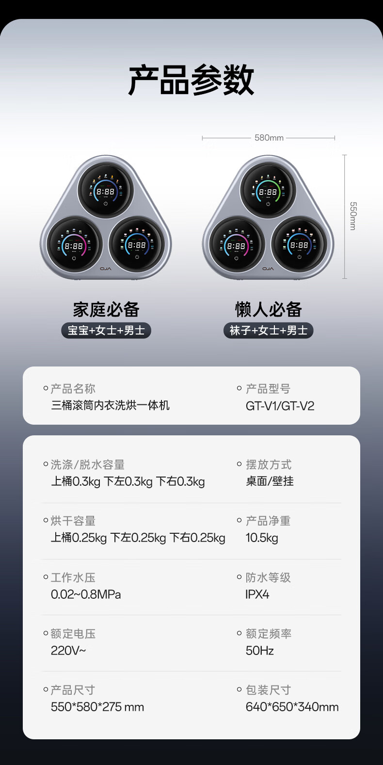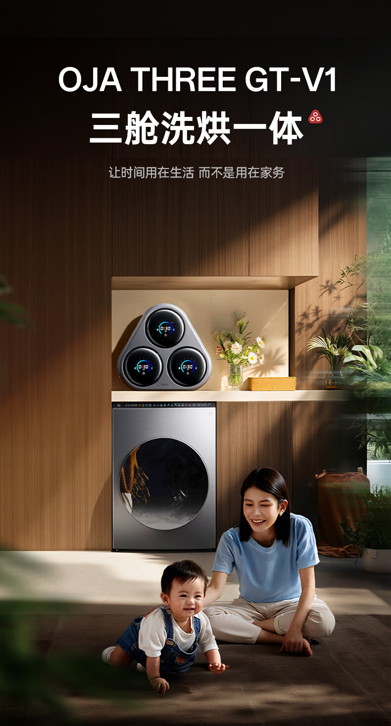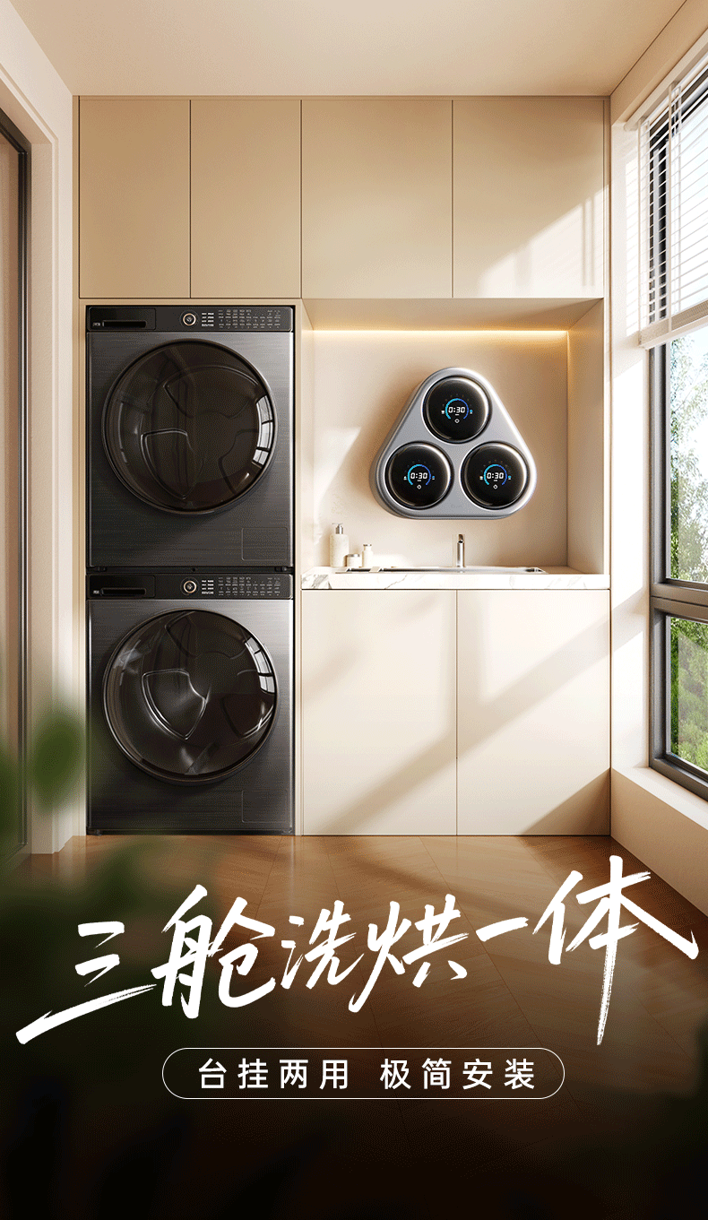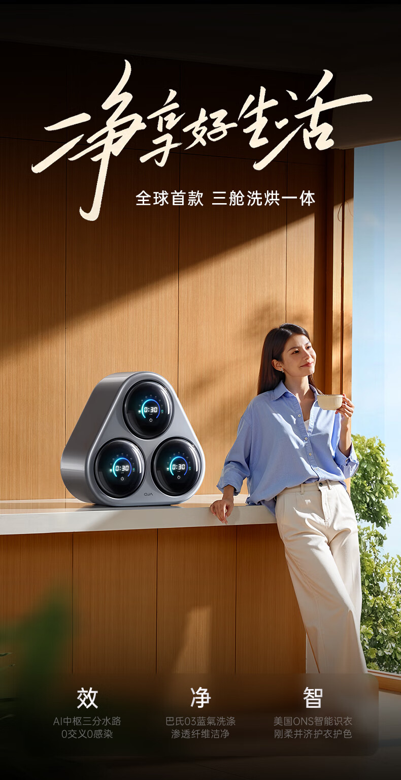 OJA hot-selling 100W丨Three-chamber pasteurization washing underwear washing machine three-cylinder fully automatic wall-mounted small washing and drying all-in-one sock machine three-cylinder sterilization, cooking, washing and dehydration, a must-have for lazy people, three-cylinder washing, drying and drying in one