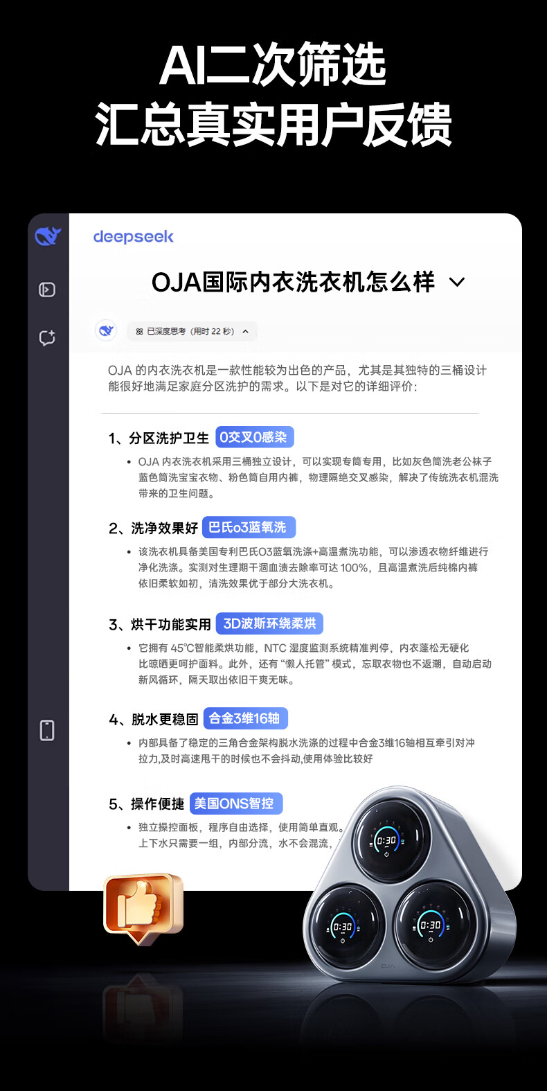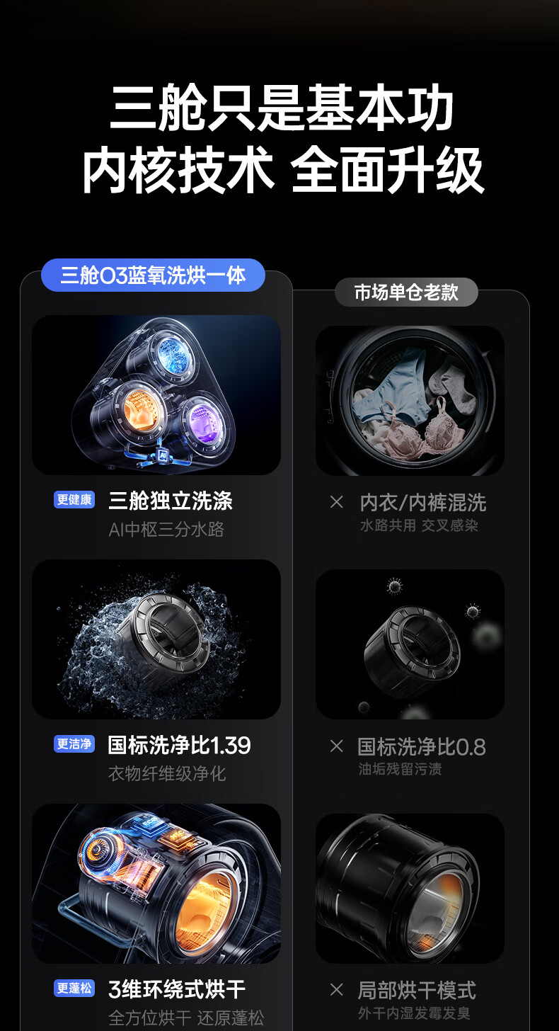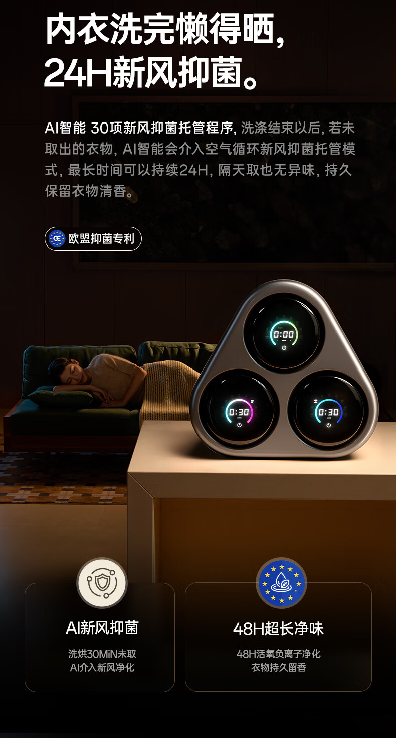 OJA hot-selling 100W丨Three-chamber pasteurization washing underwear washing machine three-cylinder fully automatic wall-mounted small washing and drying all-in-one sock machine three-cylinder sterilization, cooking, washing and dehydration, a must-have for lazy people, three-cylinder washing, drying and drying in one