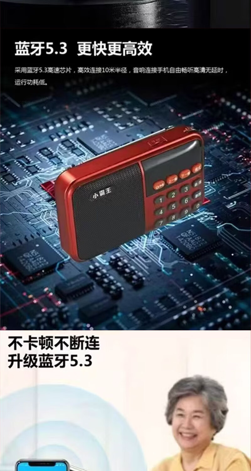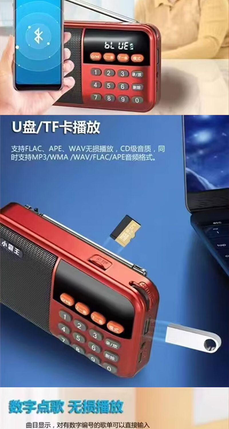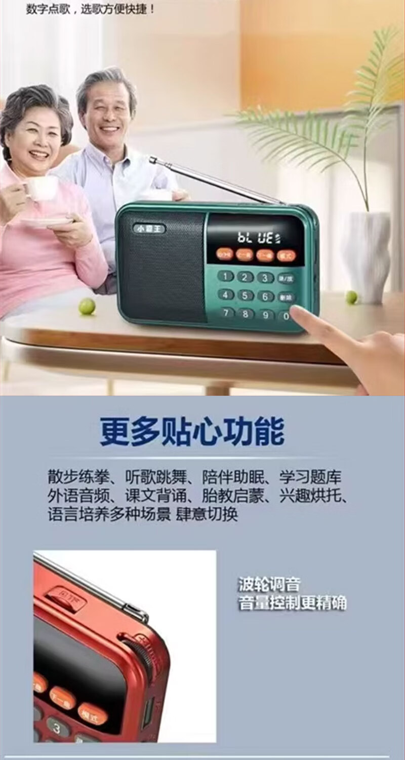 Radio Bluetooth audio player plug-in card small audio radio can be inserted into the card into the U disk into the earphones old man radio Bluetooth radio grass green standard (host + charging cable + battery + lanyard)
