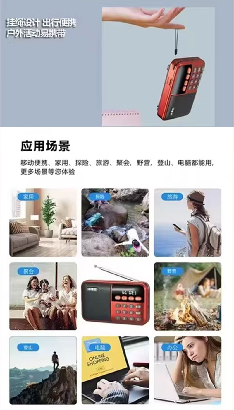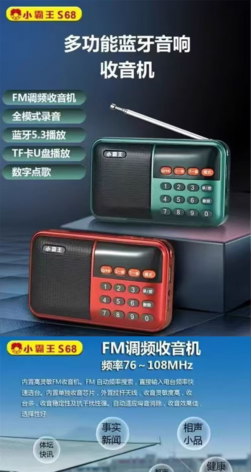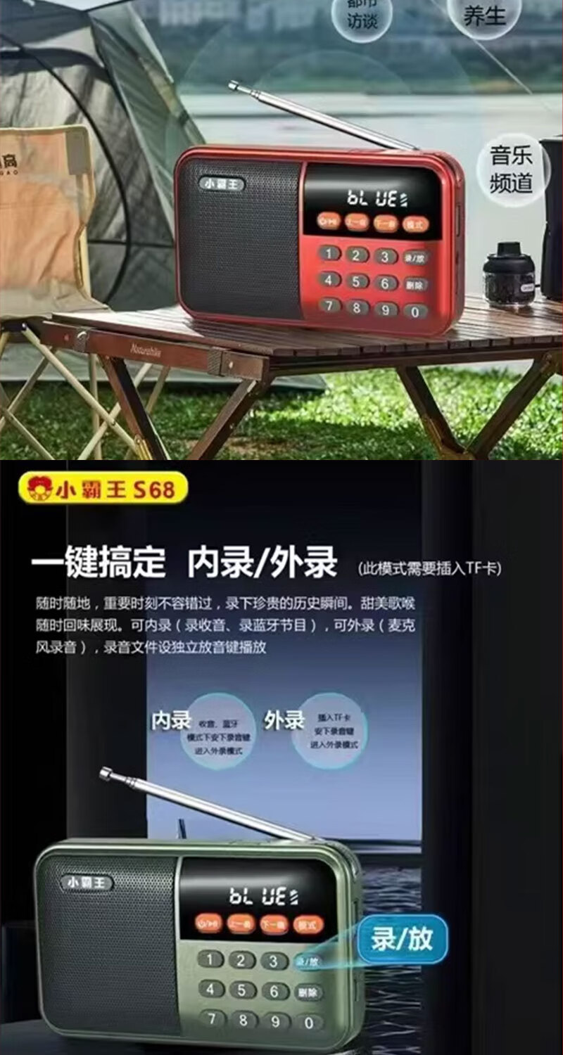 Radio Bluetooth audio player plug-in card small audio radio can be inserted into the card into the U disk into the earphones old man radio Bluetooth radio grass green standard (host + charging cable + battery + lanyard)