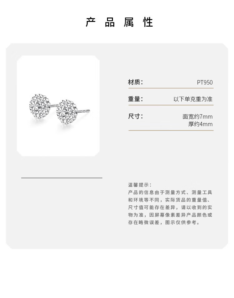 Liuguifu Jewelry Platinum Earrings Women's PT950 Earrings Birthday Gift About 2.25g