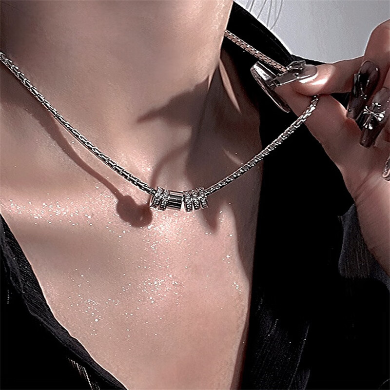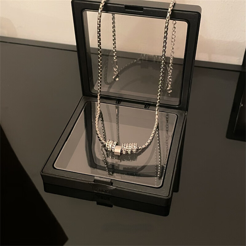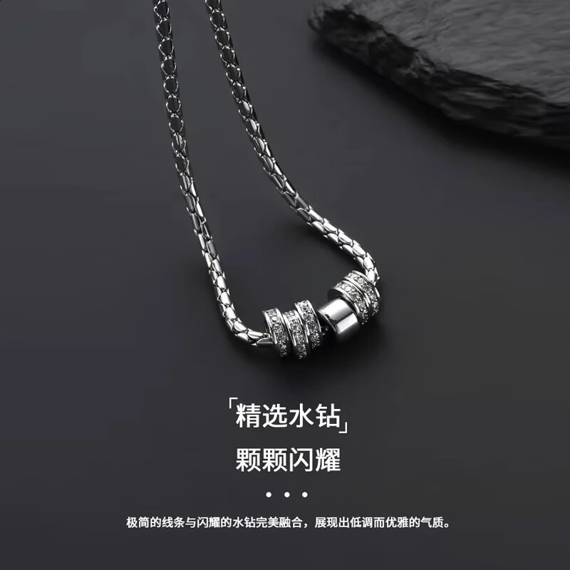 Sparkling ring pendant necklace, cold style titanium steel chain, same style for men and women, light luxury, fashionable and versatile, temperament clavicle chain, sparkling diamond ring necklace (50cm+5cm)