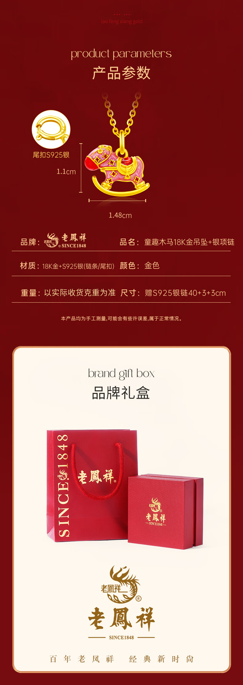 Lao Fengxiang 18K Gold Necklace Women's Trojan Horse Pendant Jewelry Fashion Light Luxury Versatile Birthday and Anniversary Gift for Girlfriend and Wife Childlike Trojan Horse 18K Gold Pendant* Branded Gift Box