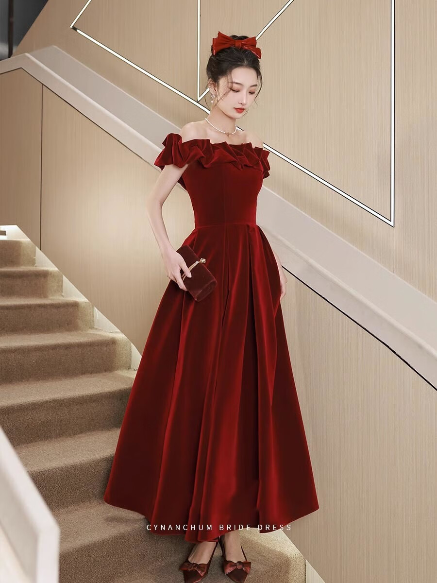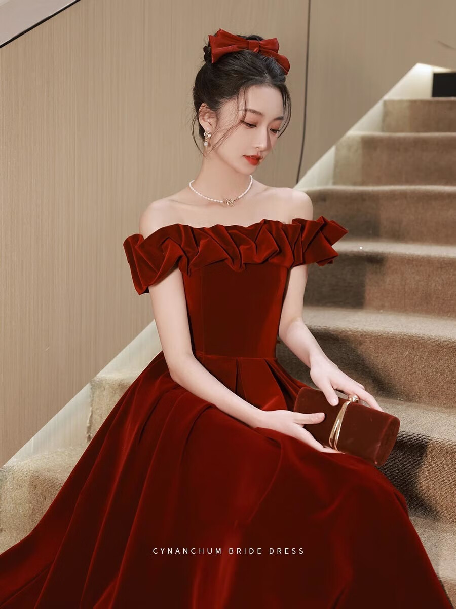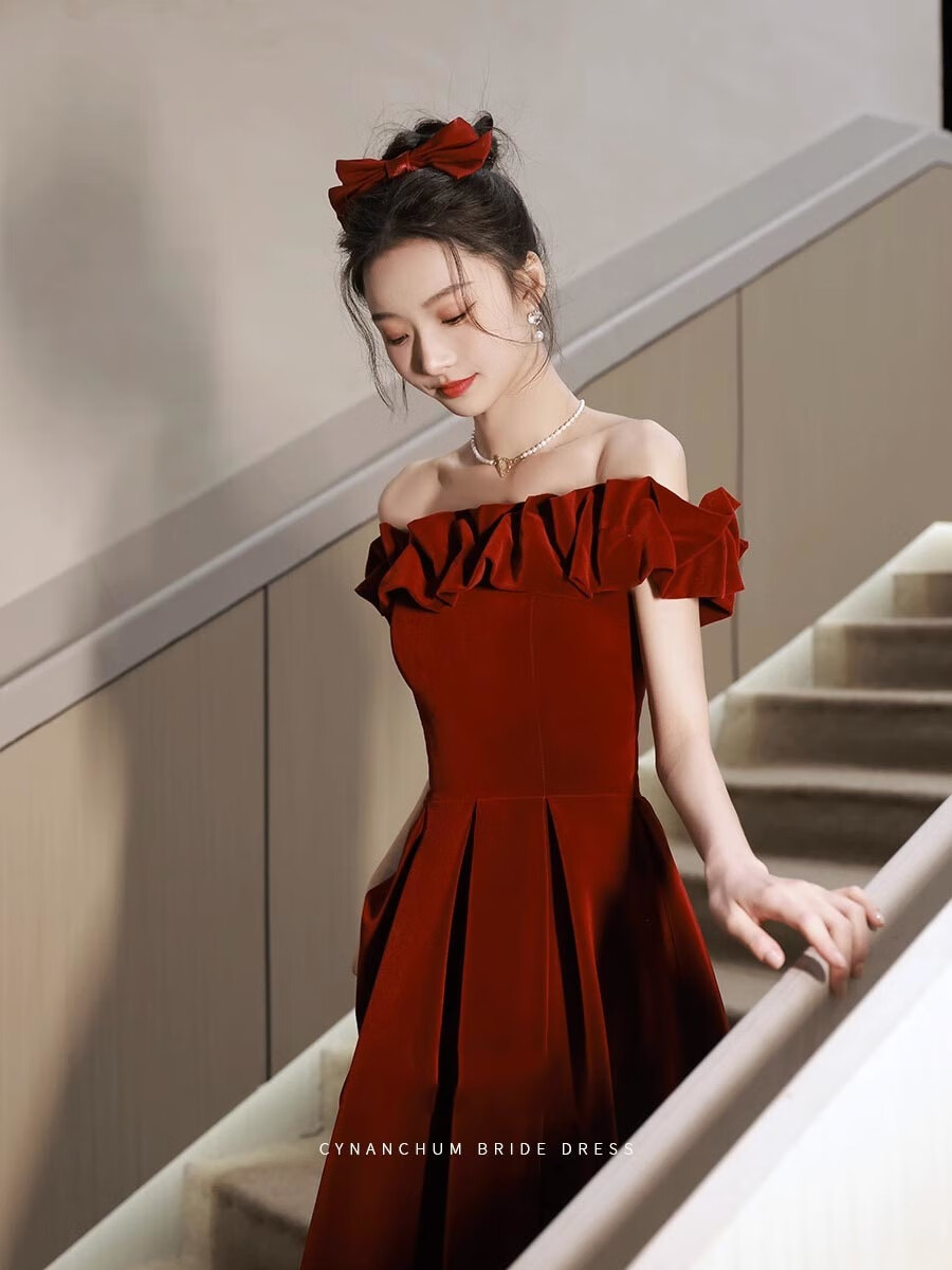 Cha Xiao'a one-shoulder engagement dress for women 2025 new toast dress bride can usually wear wedding dress back to the door banquet burgundy L