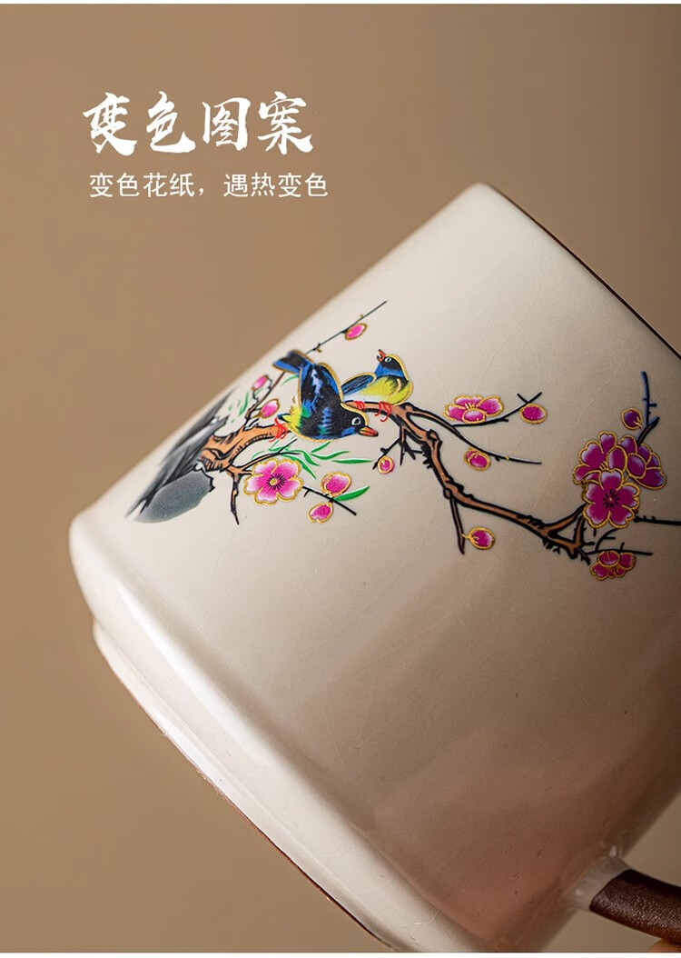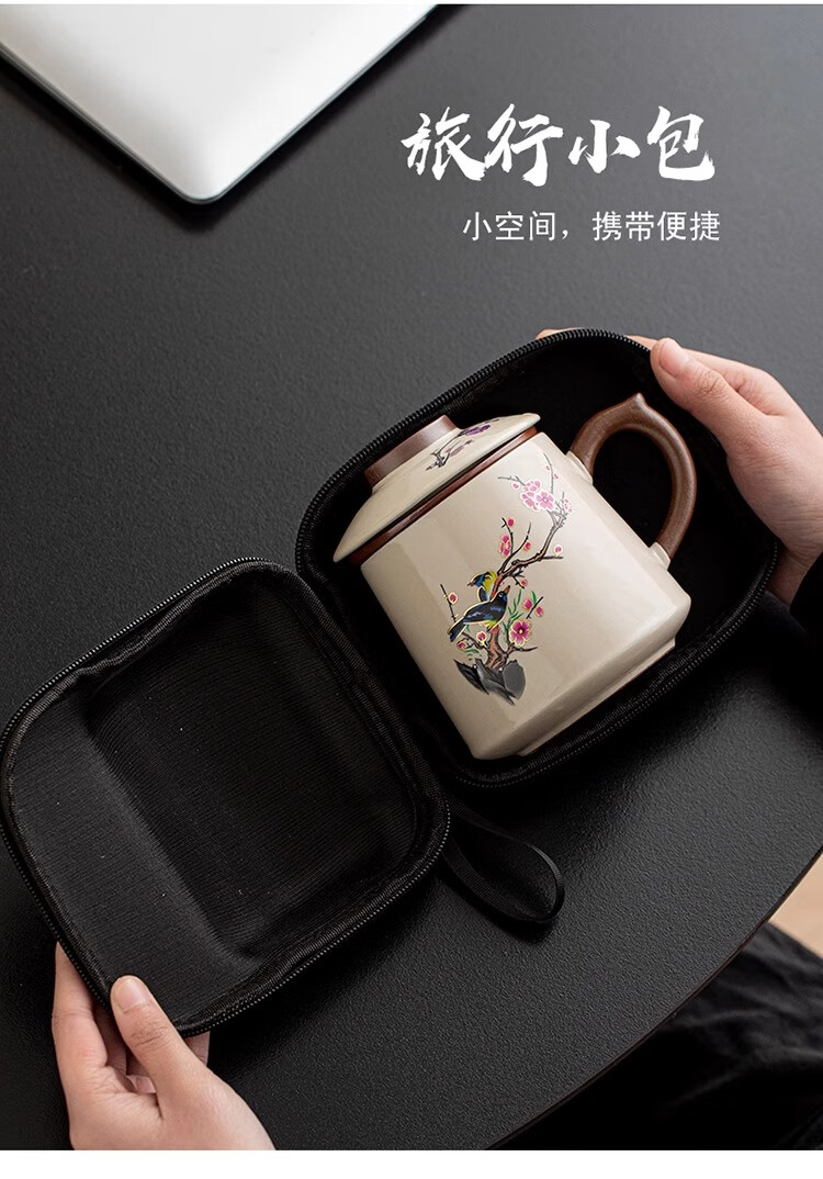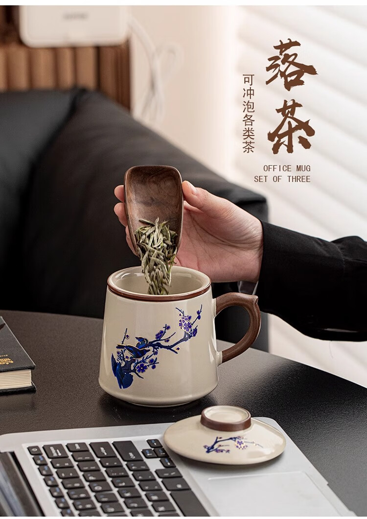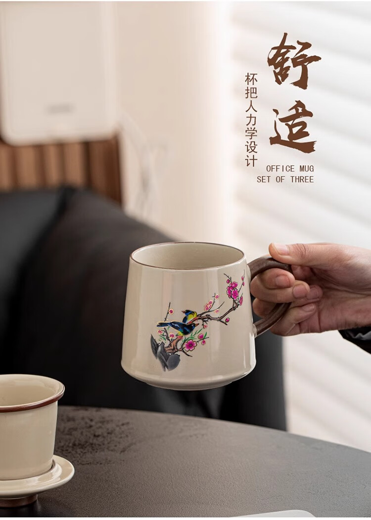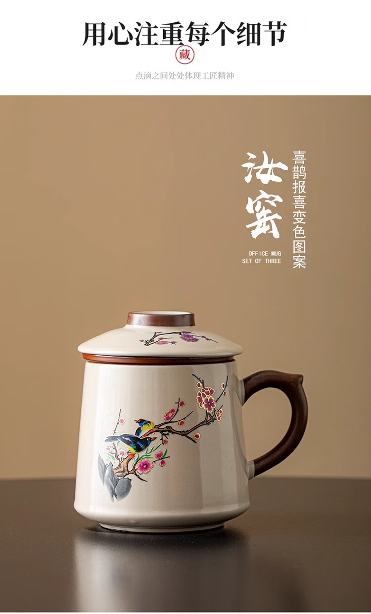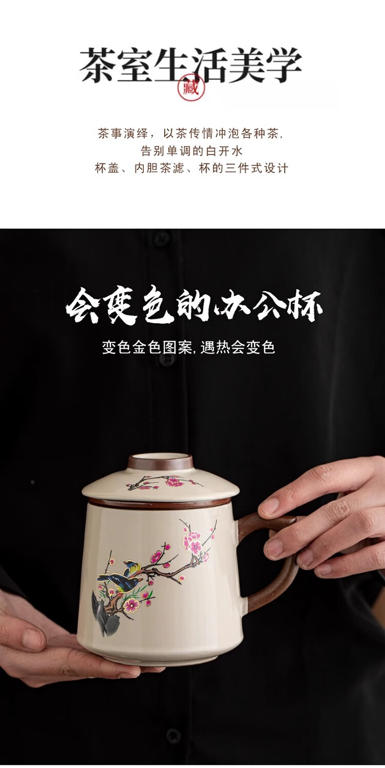 Ru Kiln Tea Cup Large Capacity Office Cup Chinese Tea Separator Cup Color Changing Mug Filtered Tea Cup with Lid Ceramic Ru Kiln Landscape Painting Office Cup