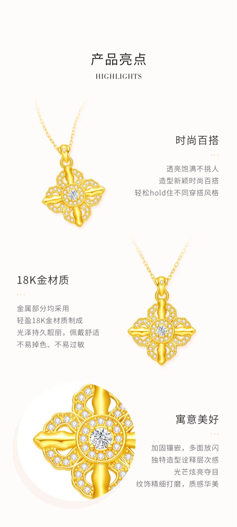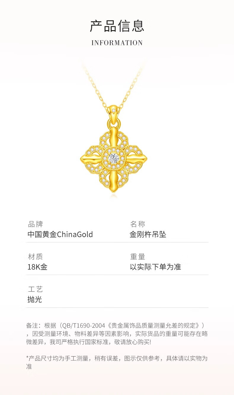 CHINA GOLD 18K Gold Cross Vajra Pendant Women's K Gold Necklace Practical Valentine's Day Birthday Gift for Girlfriend and Wife 18K Vajra Pendant About 0.3g Free Pure Silver Chain