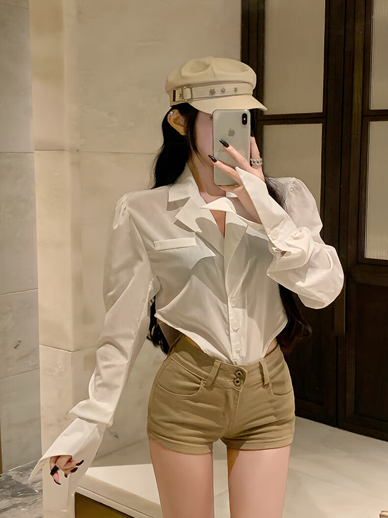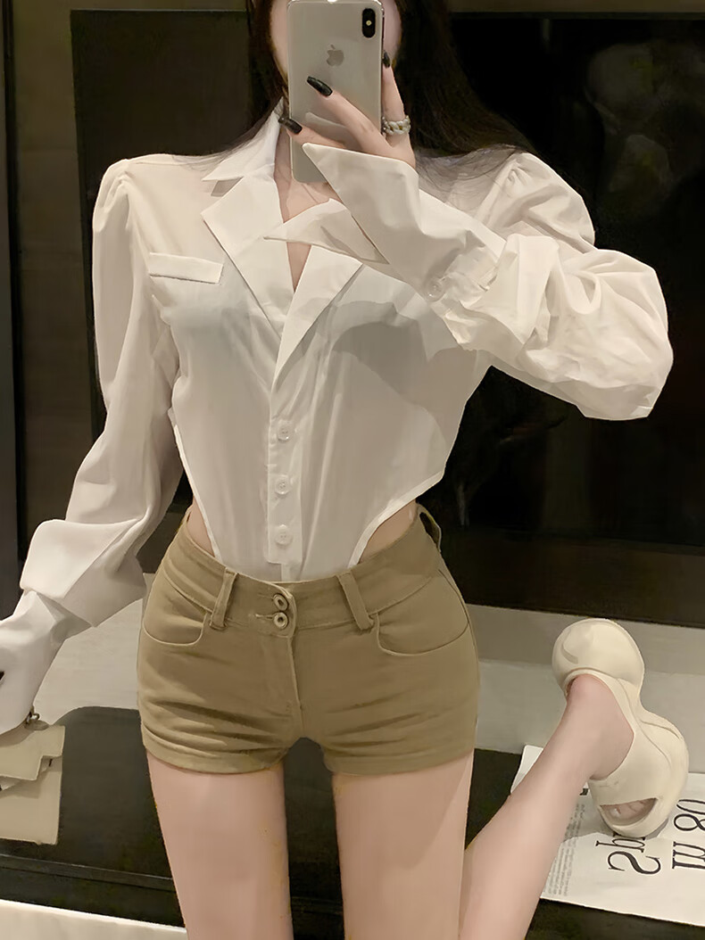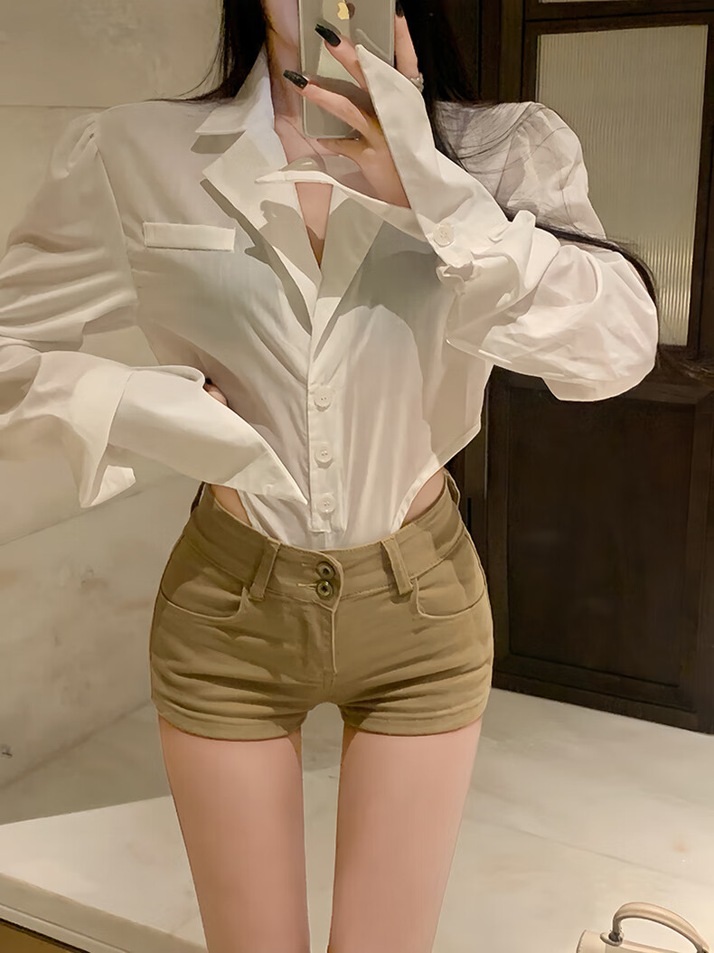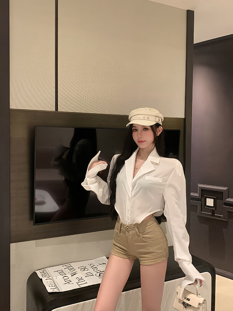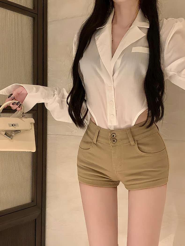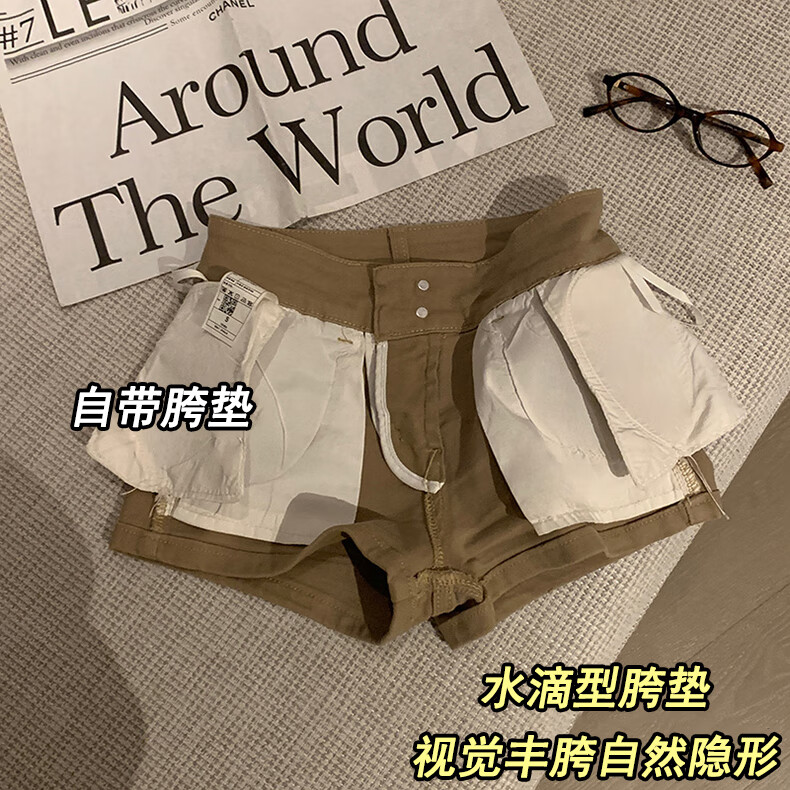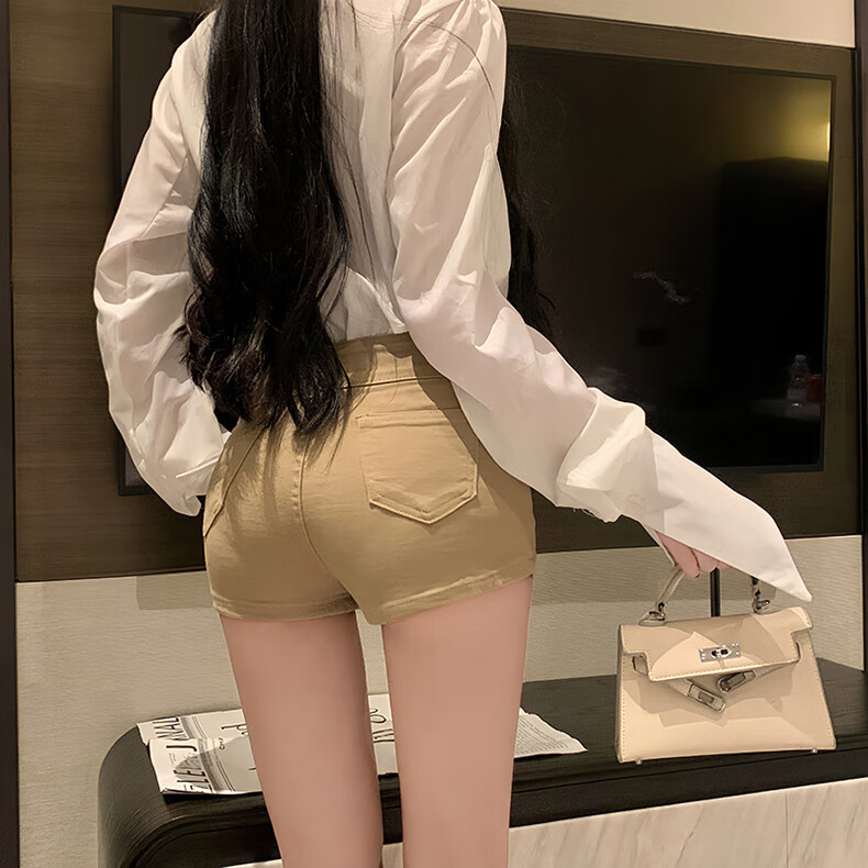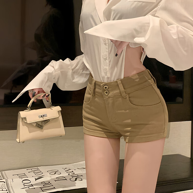 Mu Ni American Hot Girl Denim Shorts Spring and Autumn Women's High Waist Elastic Slim Casual Versatile Hip-covering Ultra Short Hot Pants High Waist Shorts Khaki Recommended 85-115 Jin Jin is equal to 0.5 kg