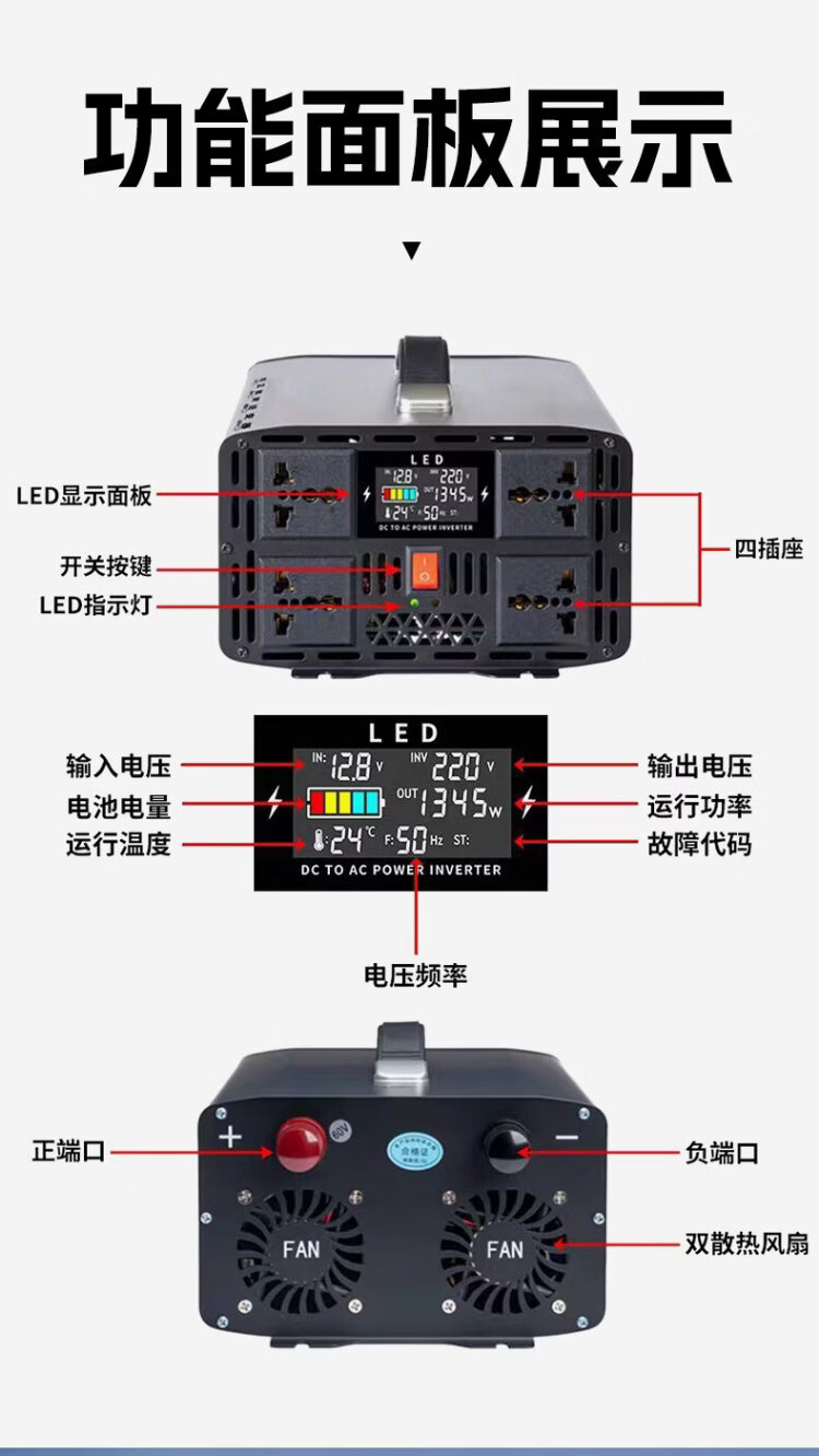 Enboxheng inverter dedicated to stall setting pure sine wave 48V60V72V to 220V for electric tricycles with 6000W high power 48V to 220V-5000W pure sine wave multi-functional battery power converter丨intelligent cooling