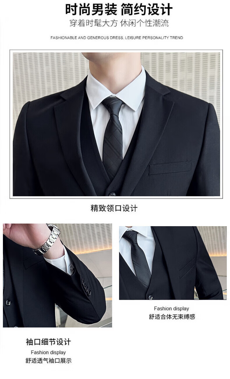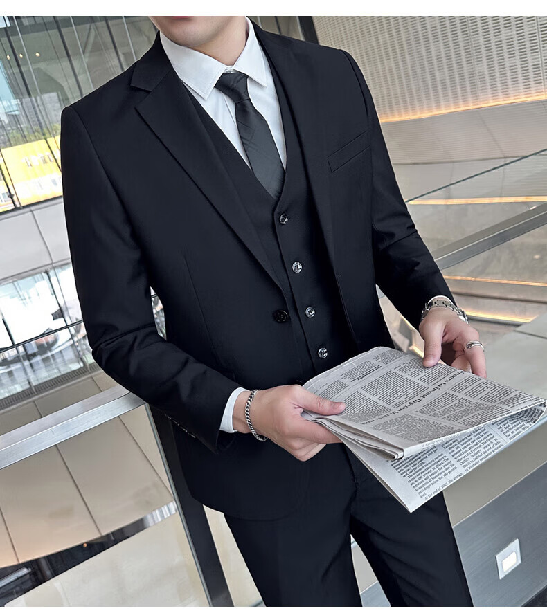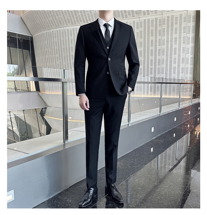 Luo Meng Suit Men's Suit Business Suit Formal Small Suit Groomsman Best Man Jacket Men's Fashion Black Double Button Suit+Trousers+Shirt 2XL/180 130-145Jin Jin equals 0.5 kg +7 gifts
