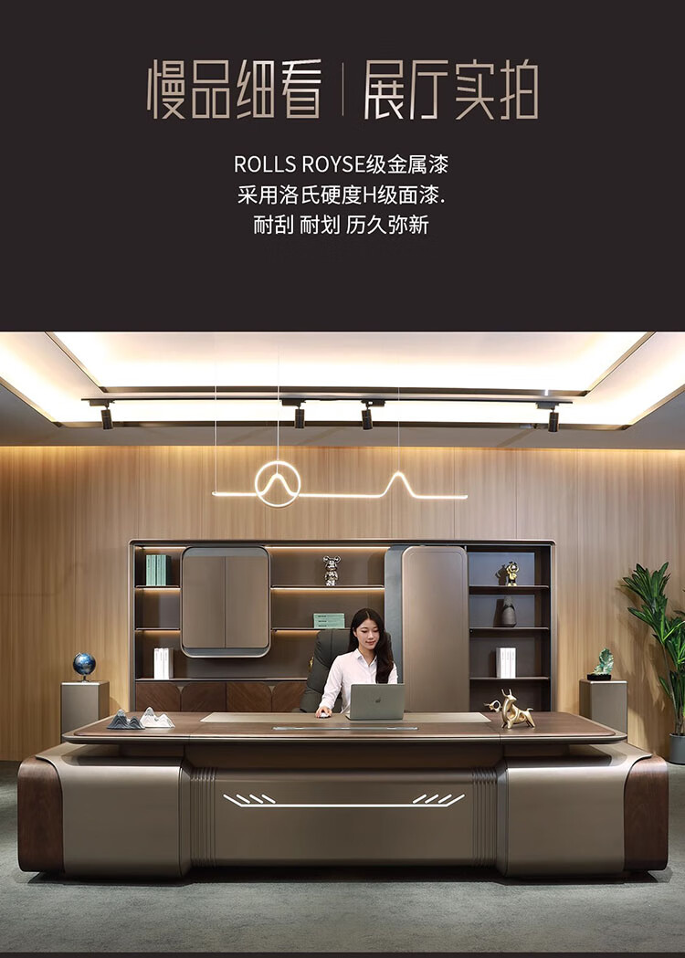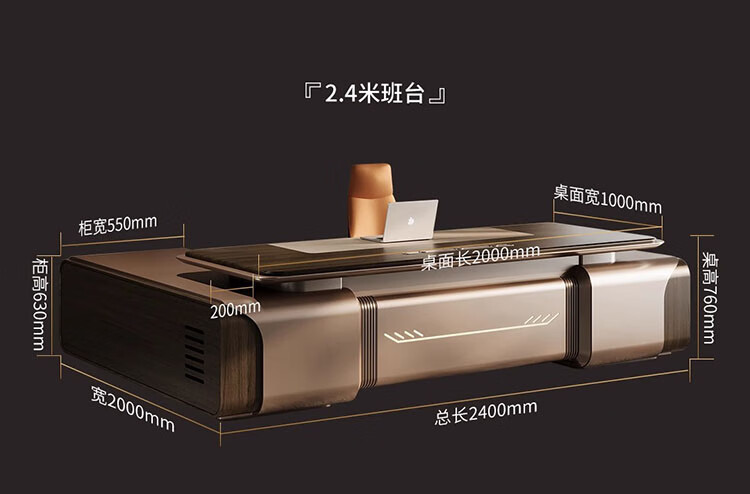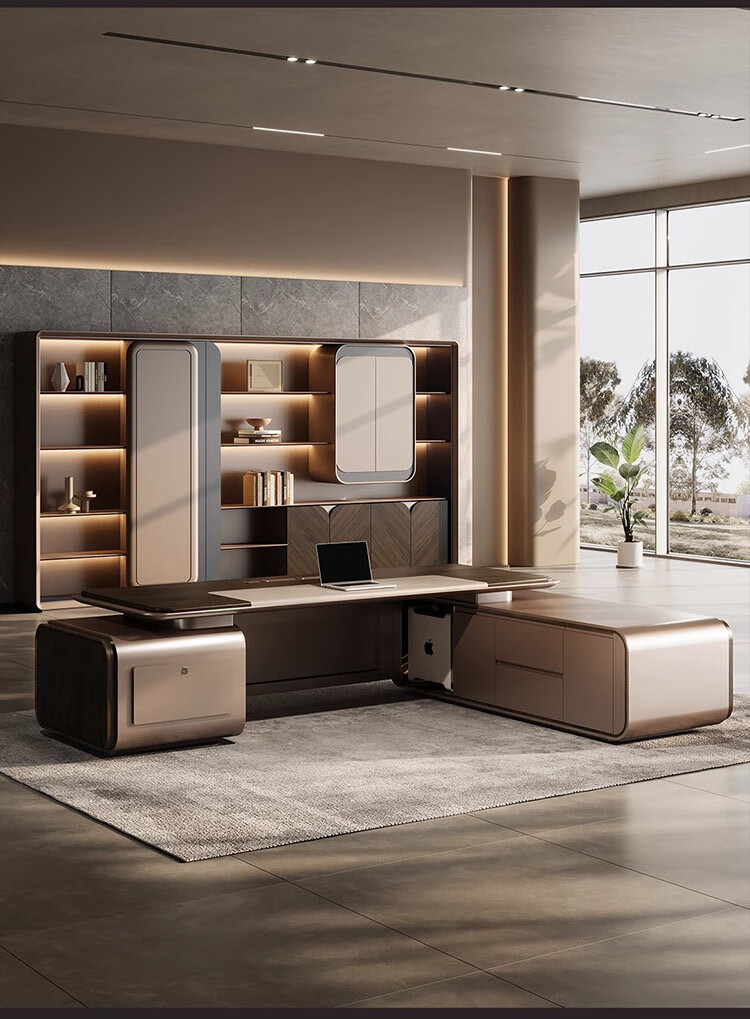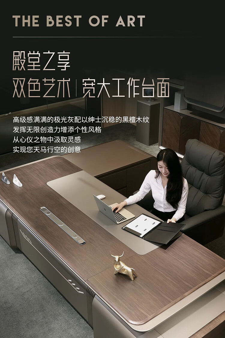 Tongta high-end light luxury boss desk desk simple modern office chairman solid wood leather president desk executive desk 2.4 meters boss desk