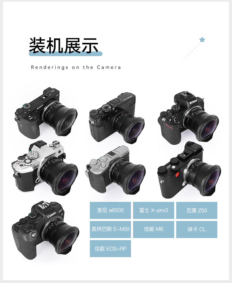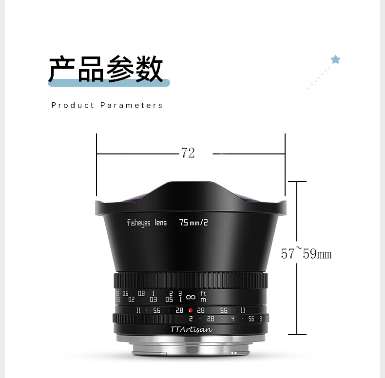 Mingjiang 7.5mm f2 wide-angle fisheye lens, fixed-focus lens for starry sky scenery shooting, suitable for X mount E mount Z mount RF mount RF mount L mount mirrorless camera lens Canon RF mount official standard package does not include filter cleaning kit and other necessary accessories. Recommended package