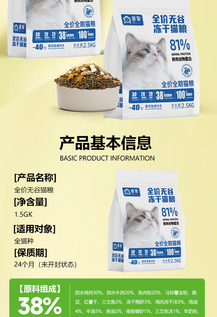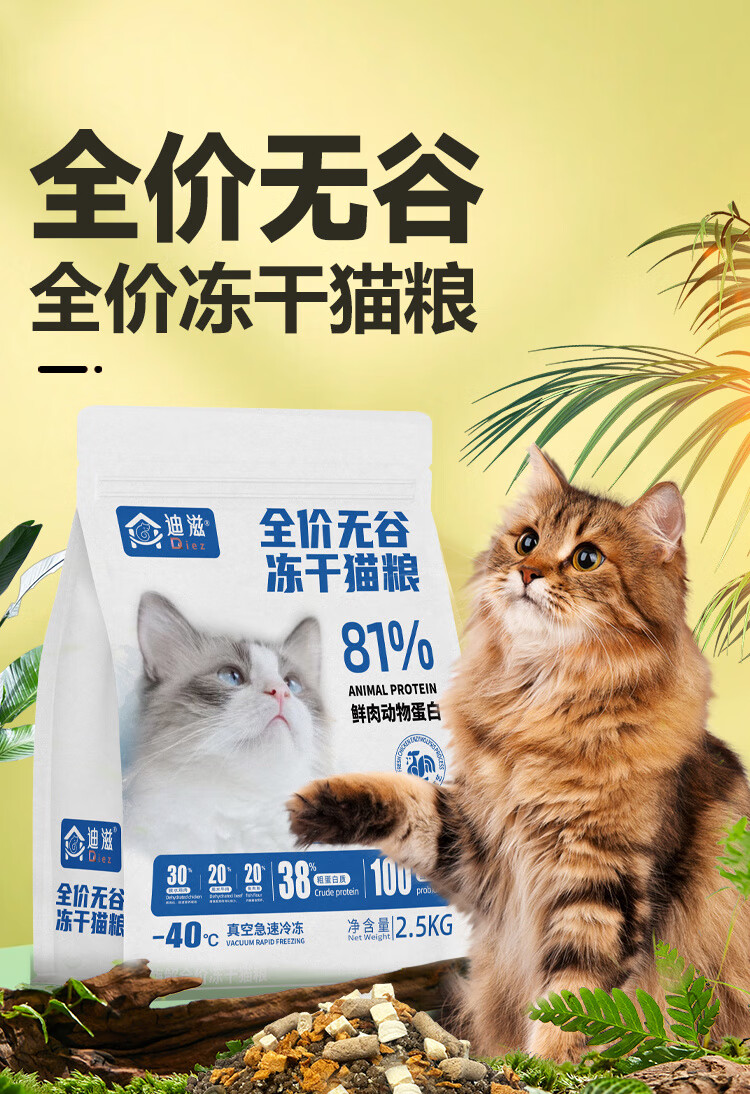 Dizi's full-price fresh meat high-protein freeze-dried cat food for young cats, general fattening, hair, cheeks, and fur, freeze-dried cat food with more nutrients and meat. Five pieces of fresh meat freeze-dried cat food 5Jin Jin is equal to 0.5 kg.
