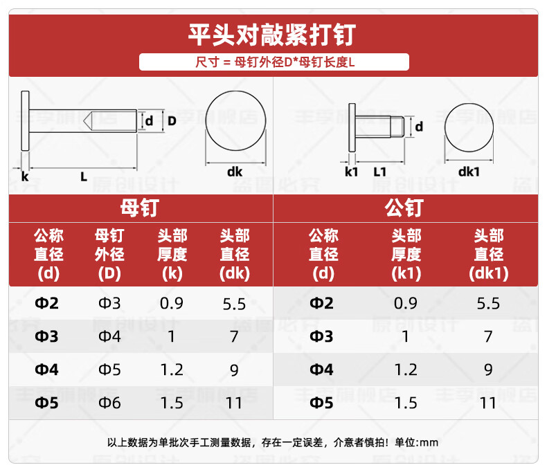 Fengji 304 stainless steel flat head female rivet male female rivet flat round head semi-hollow book album clamping nail M3*4 inner diameter 2 50 sets