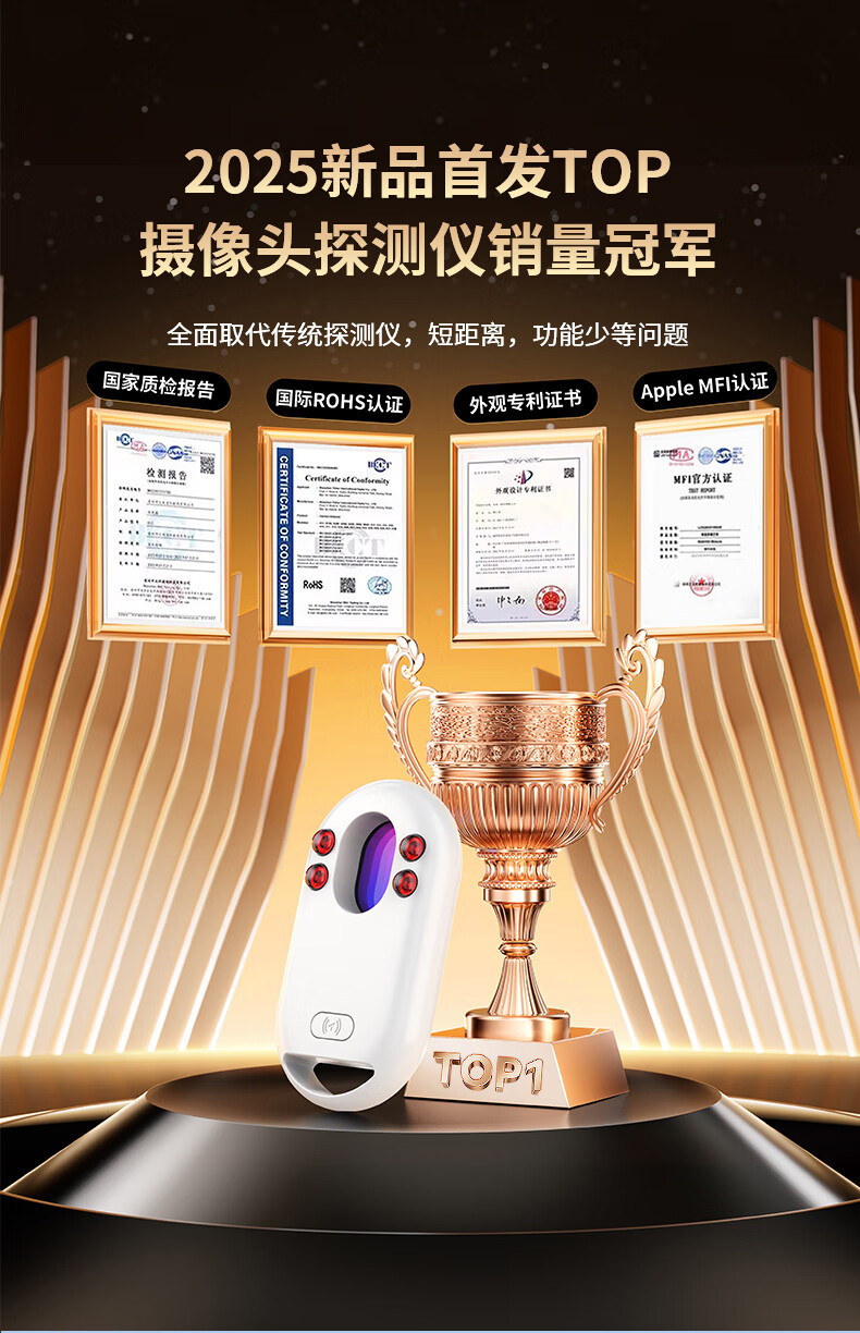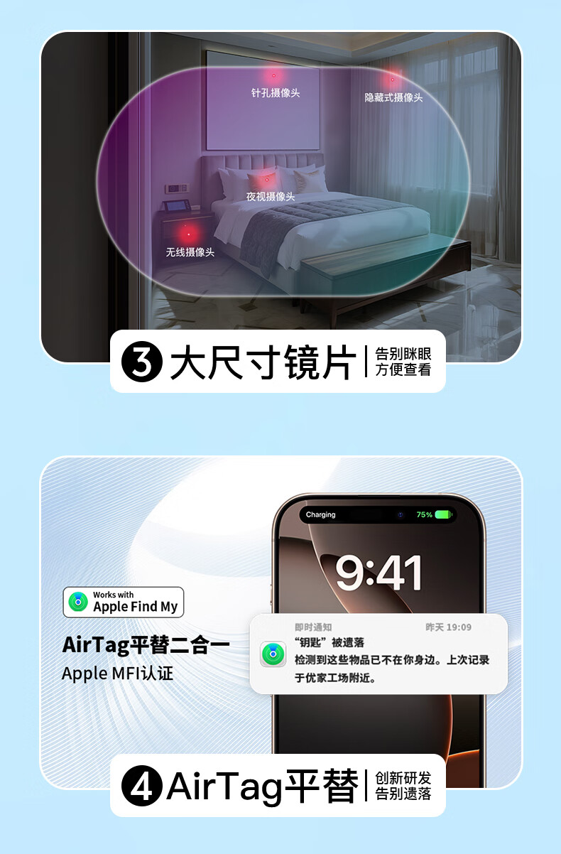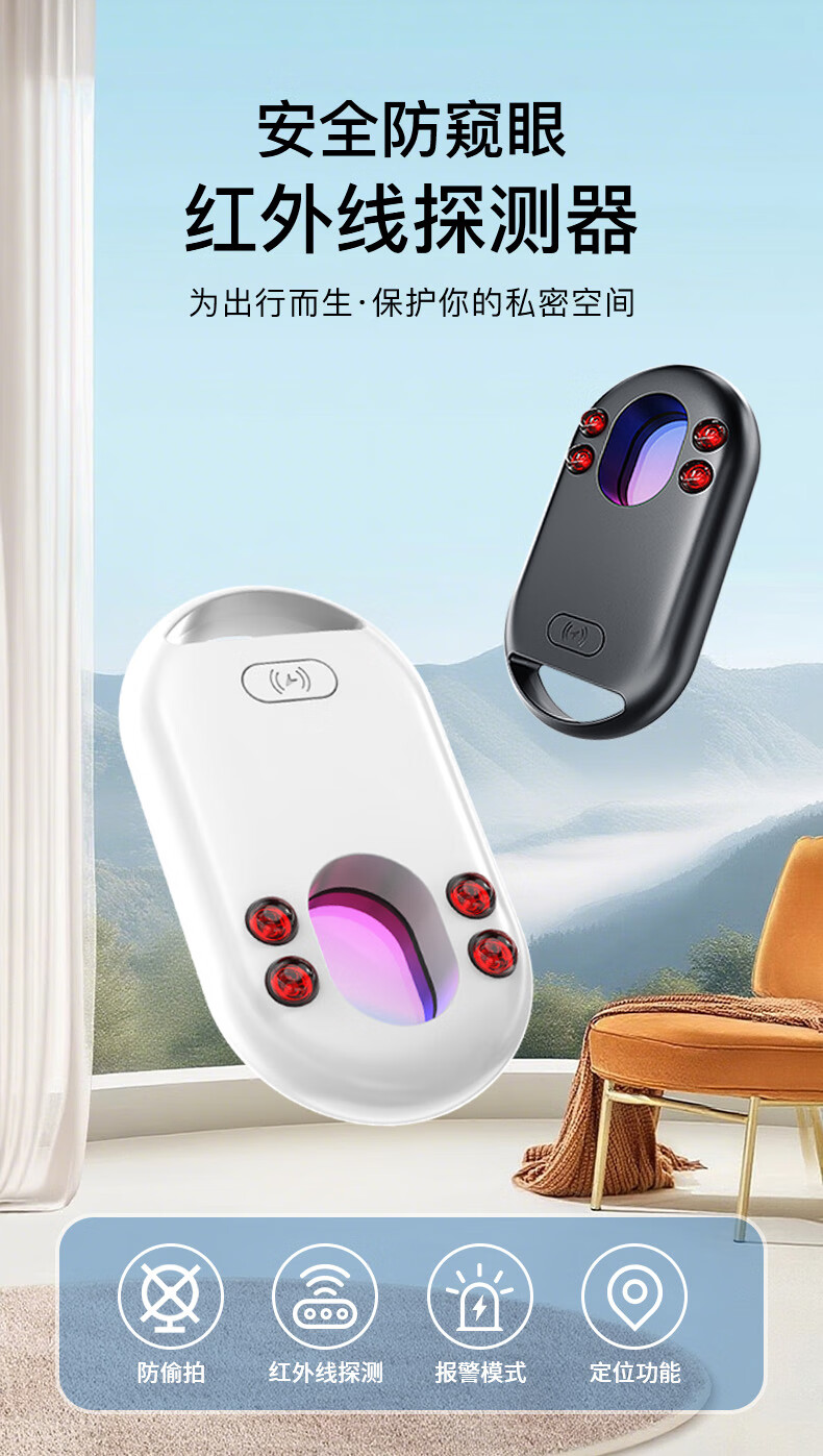 Eastonton Apple MFI Certified Hotel Camera Detector Find My Anti-Lost Device Anti-Peeping Infrared Scanning Detector Monitoring Charging Portable Suitable for Hotels and Homestays Black Hot Selling 1 Million | Anti-Peeping + Anti-Lost MFI Certified Accurate Detection + Prevent Privacy Leakage + Super Long Battery Life