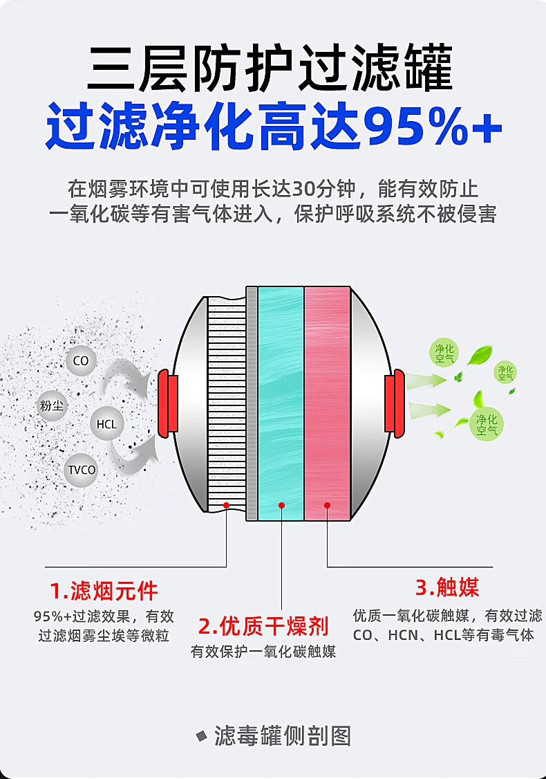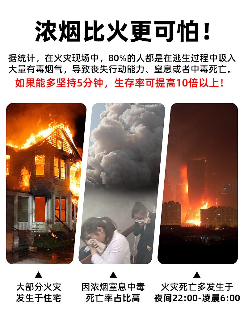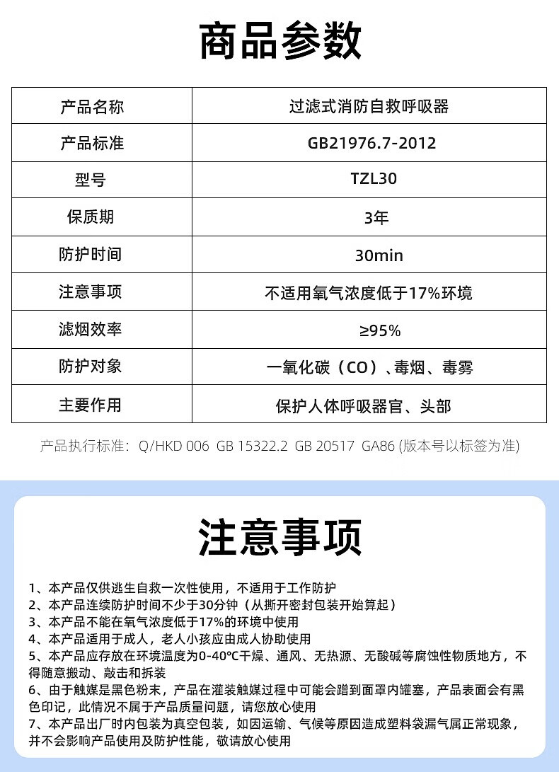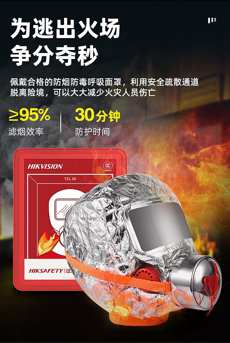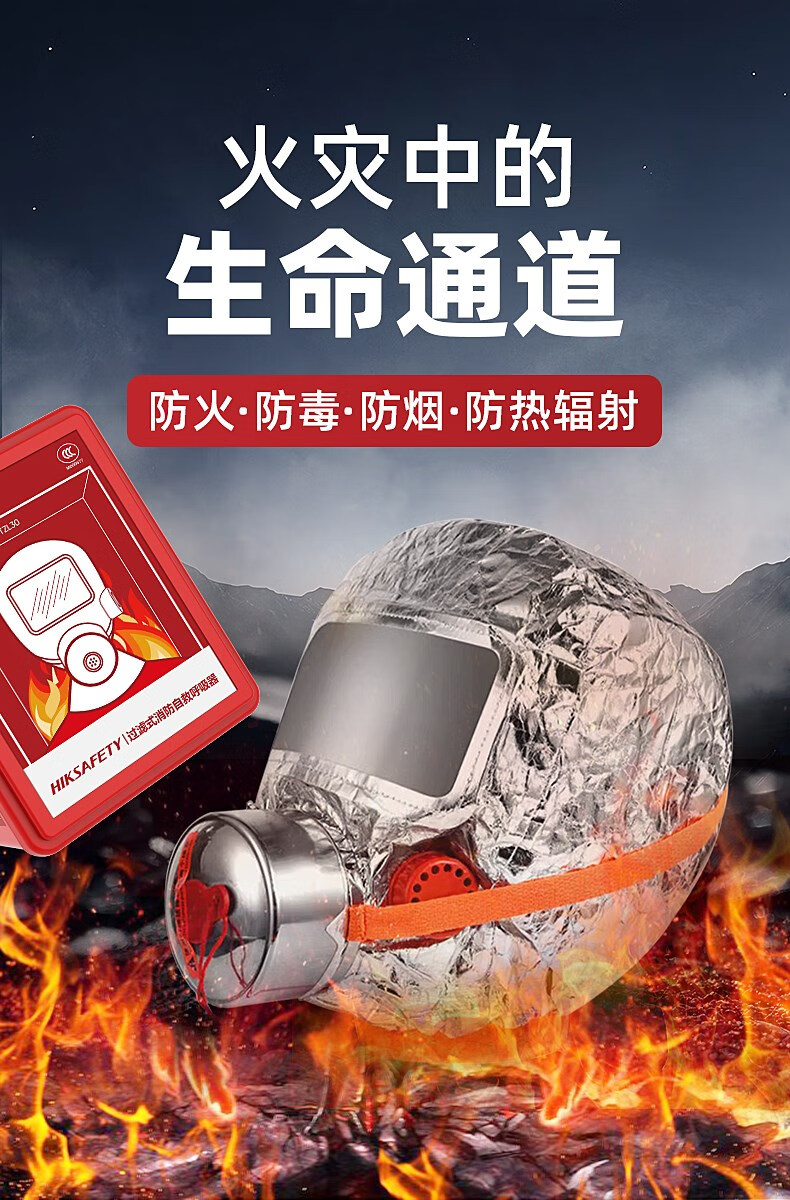 Zhihuishu Hikvision fire mask anti-fire escape mask 3C certified filter type anti-smoke and anti-virus self-rescue respirator model-single escape