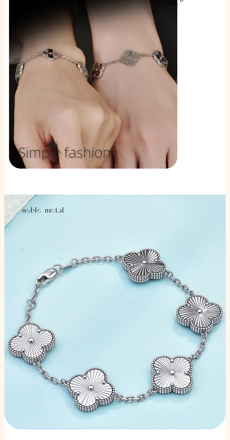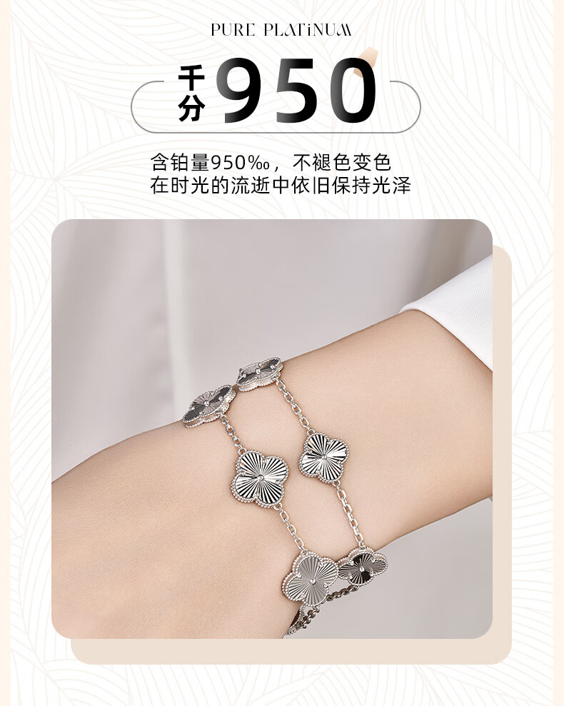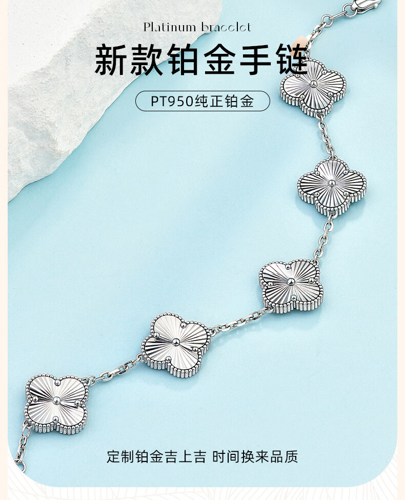 GsunG platinum PT950 five-flower bracelet for women, pure platinum four-leaf clover bracelet, new fashion plain chain four-petal flower bracelet, calculated based on the gold price in the store on the day