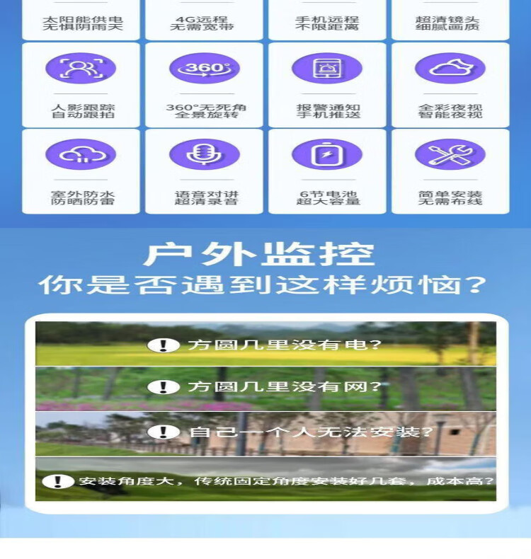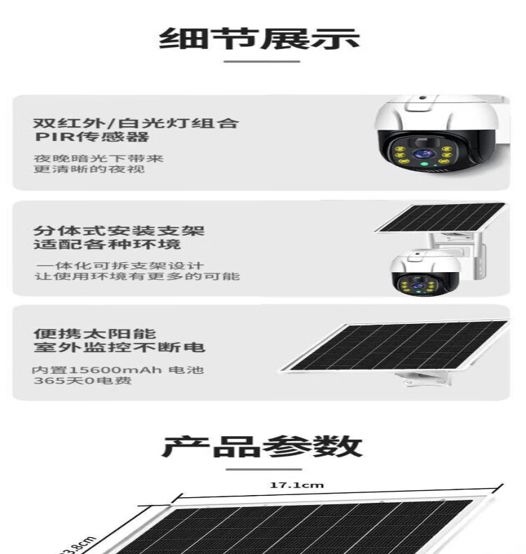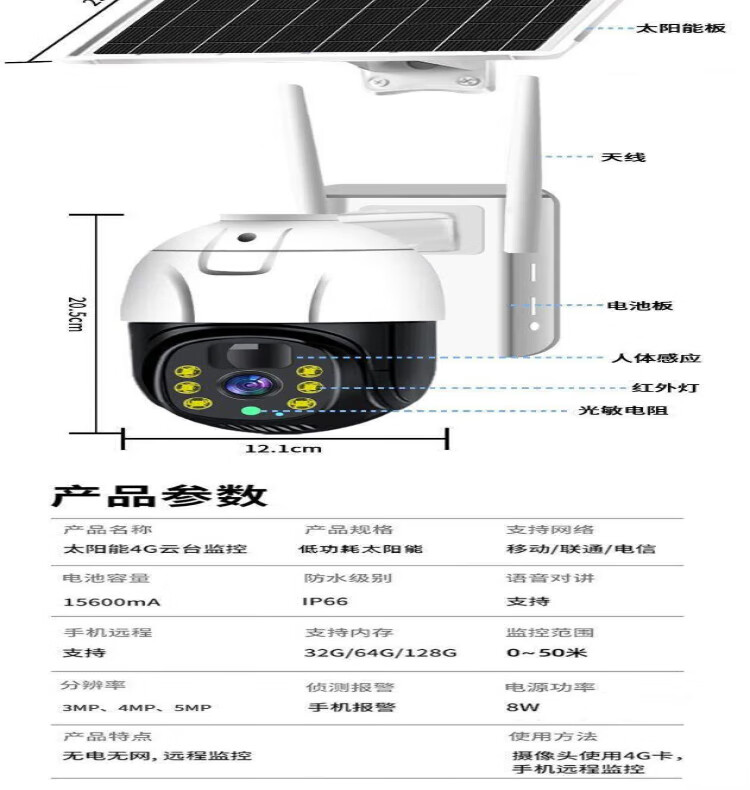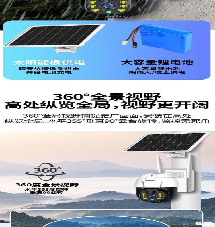 Industrial-grade surveillance super-look solar camera 360-degree no blind spots mobile phone ultra-clear outdoor waterproof M solar 980000 trillion ultra-high-definition pixels + 4800 meters zero electricity bill all year round + tracking + alarm + voice intercom