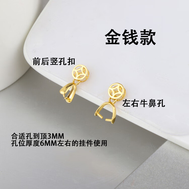 DRJEFUN cow nostril buckle head 18K gold clip buckle pendant buckle transverse hole thickened melon seed buckle necklace pendant 18K yellow straight pattern left and right cow nostril buckle