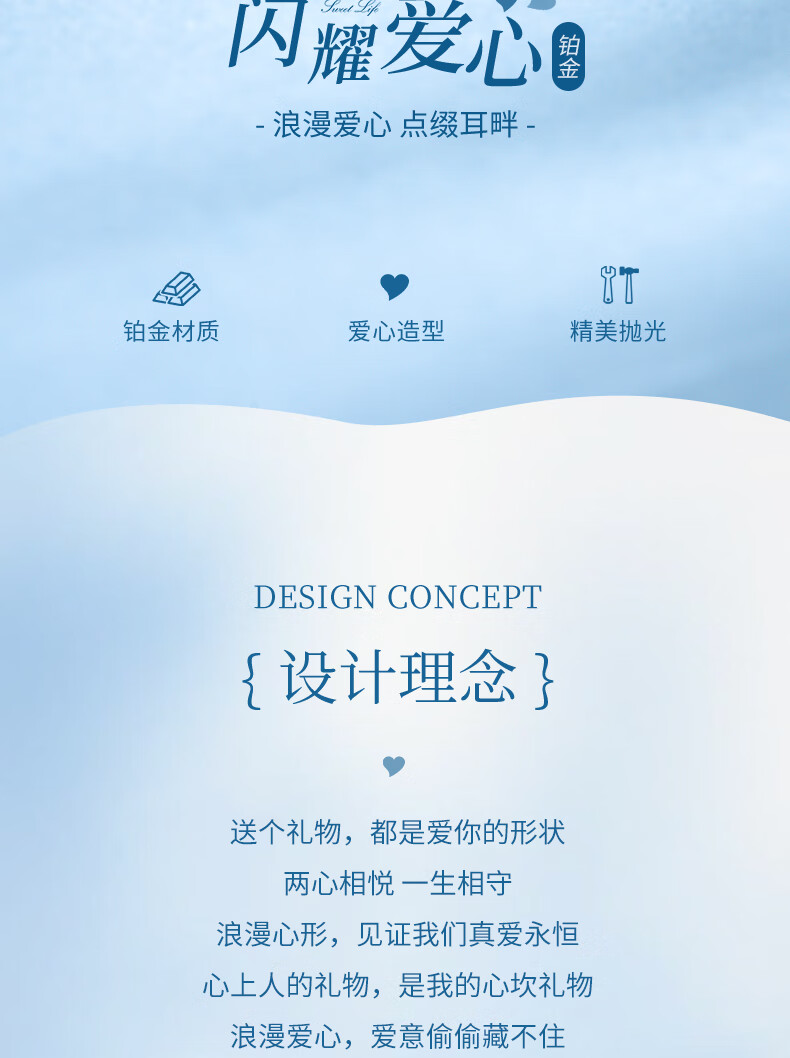 China Gold Love Platinum Earrings for Women pt950 Platinum Ear Jewelry Birthday Gift for Girlfriend and Wife Wedding Anniversary Platinum Love Earrings
