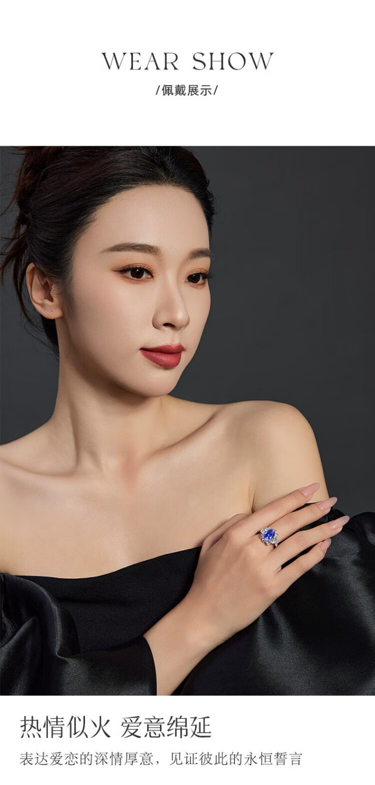 Yicai Meteor Fireworks Natural Gemstone Tanzanite Ring Women's 18K Gold Inlaid Birthday Gift for Girlfriend Boutique 3.76 Carat Size 9-17