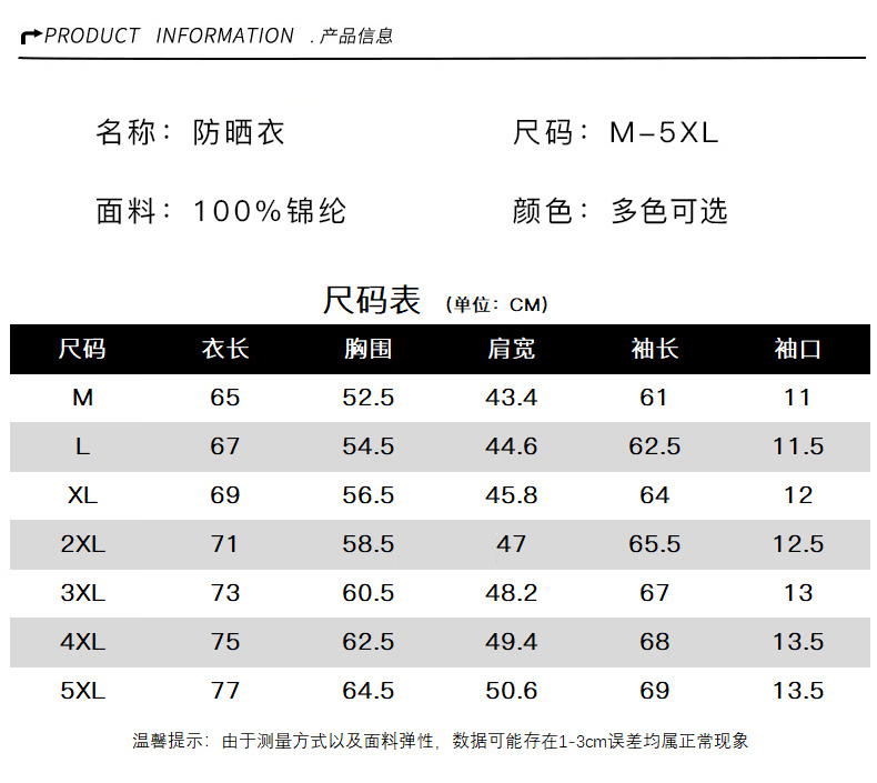 Size (cm) 42 44 46 48 50