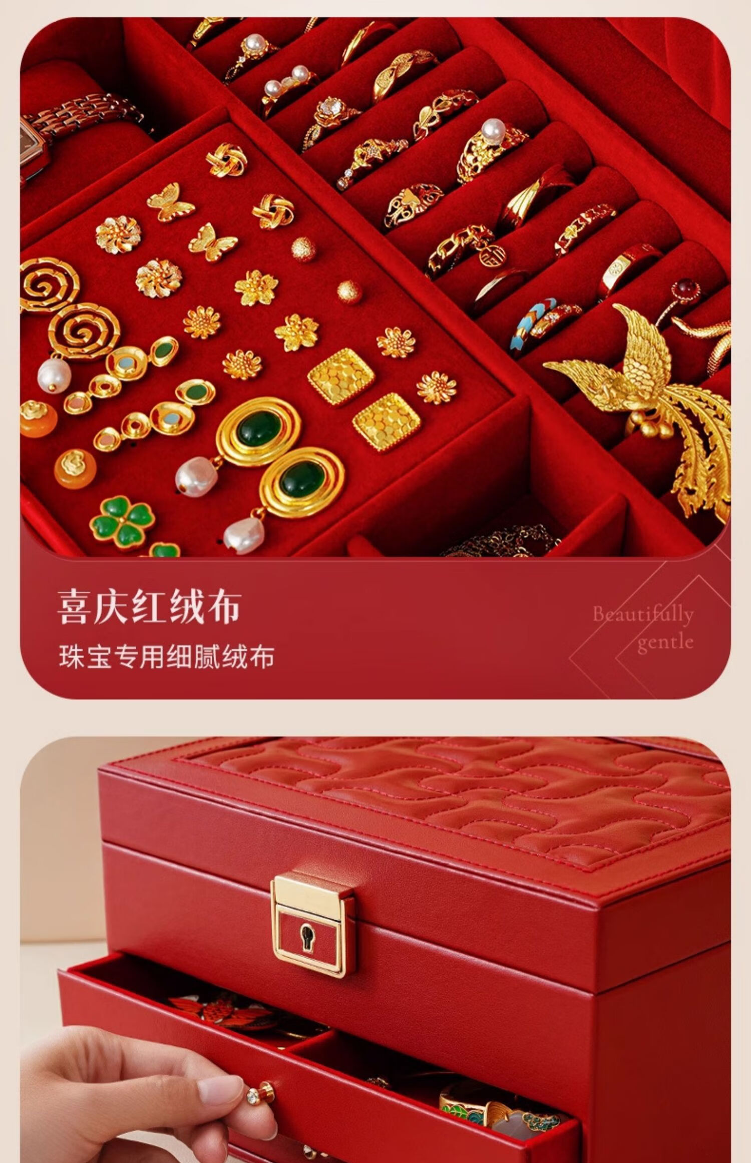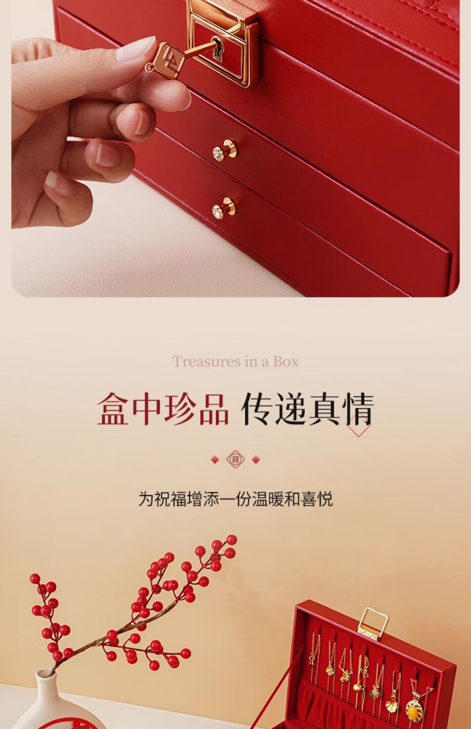 High-end wedding gift with commemorative significance. High-end and practical for bride and groom. Best friend and engagement niche. Newlywed gift. Rouge red. Three-layer multi-functional design + hardware lock + gift bag.