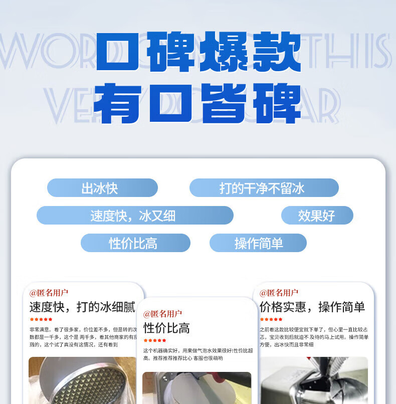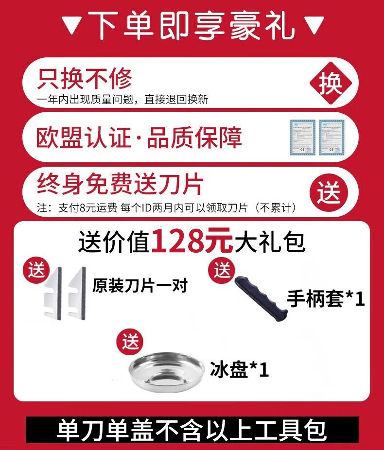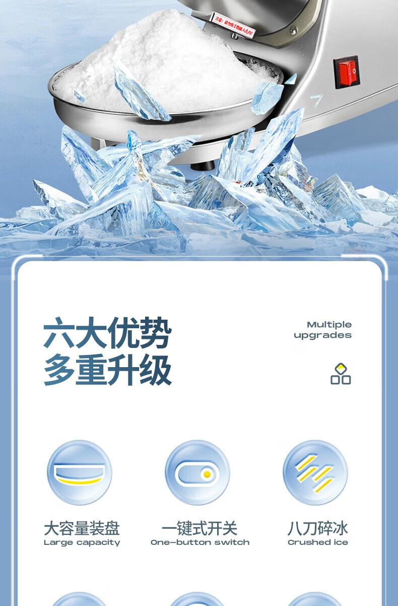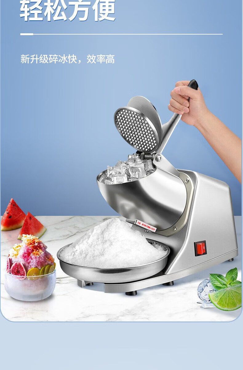 Jingyan electric shaved ice machine household fully automatic ice crusher ice machine stall commercial milk tea shop continuous ice ice machine double blades powerful motor | 3 seconds ice crushing | large capacity caliber merchants only with gift package low noise operation open the lid and power out the ice in seconds