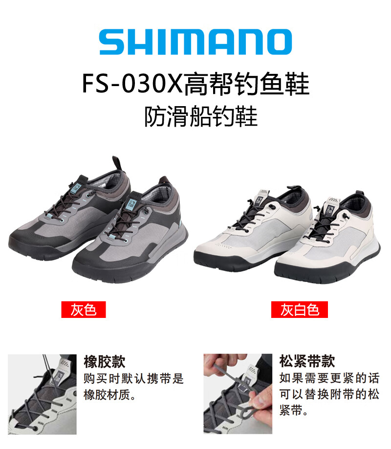 SHIMANO FS-030X high-top fishing shoes, boat fishing non-slip shoes, gray - size 43/inner length 265mm