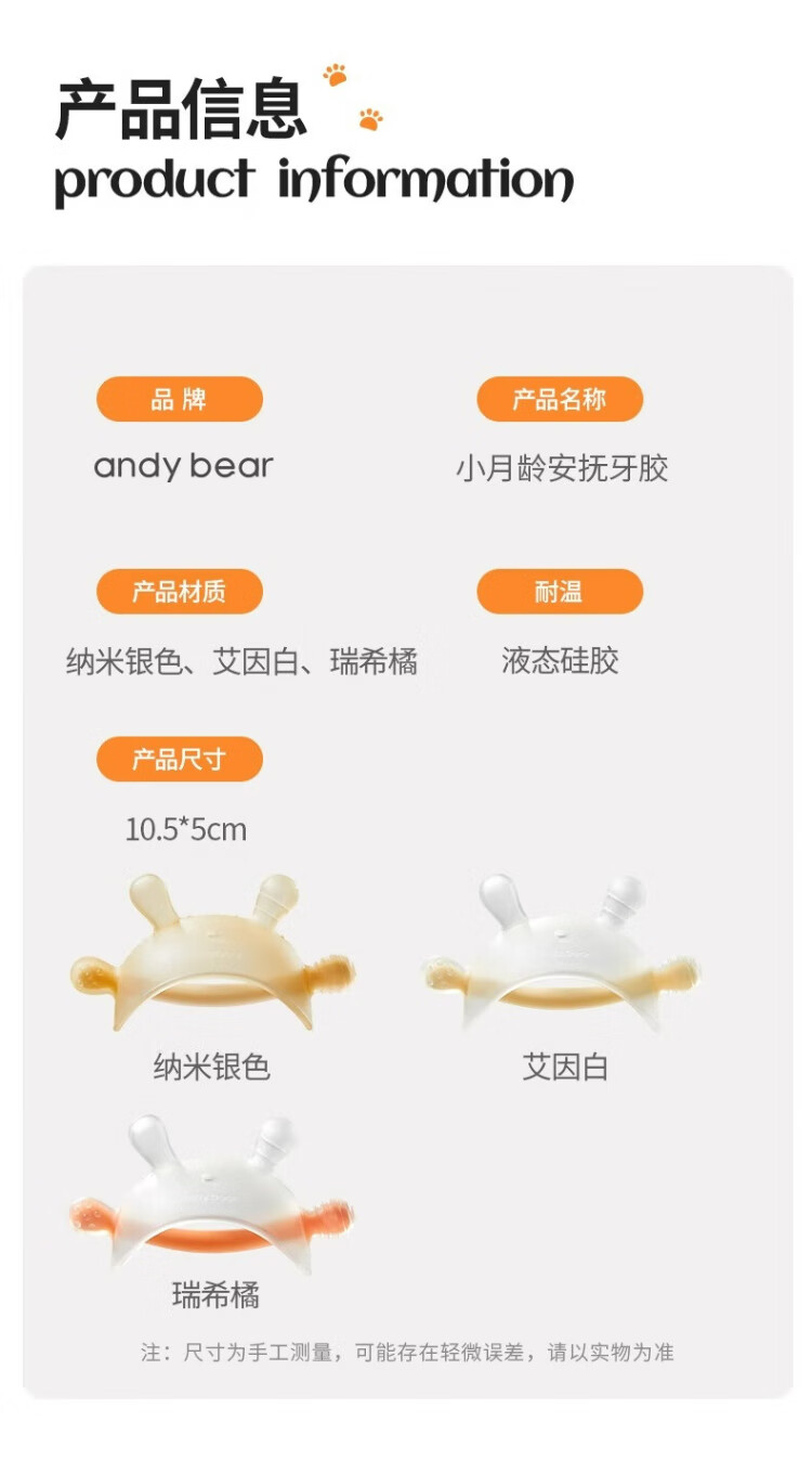 Aibedila Teether Baby Teething Stick for 6 months and above, chewing gum toy for baby to prevent hand-eating during the oral period, Ruixi Orange (comes with storage box)