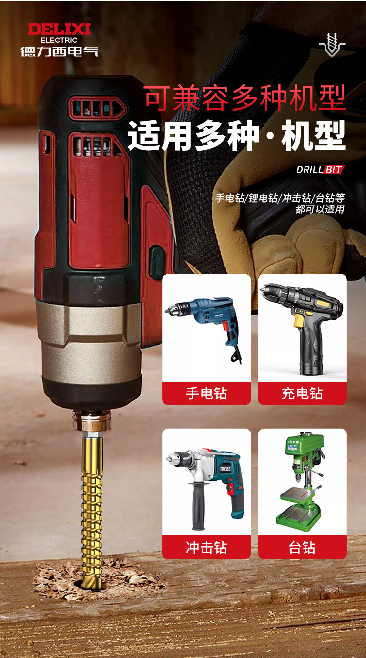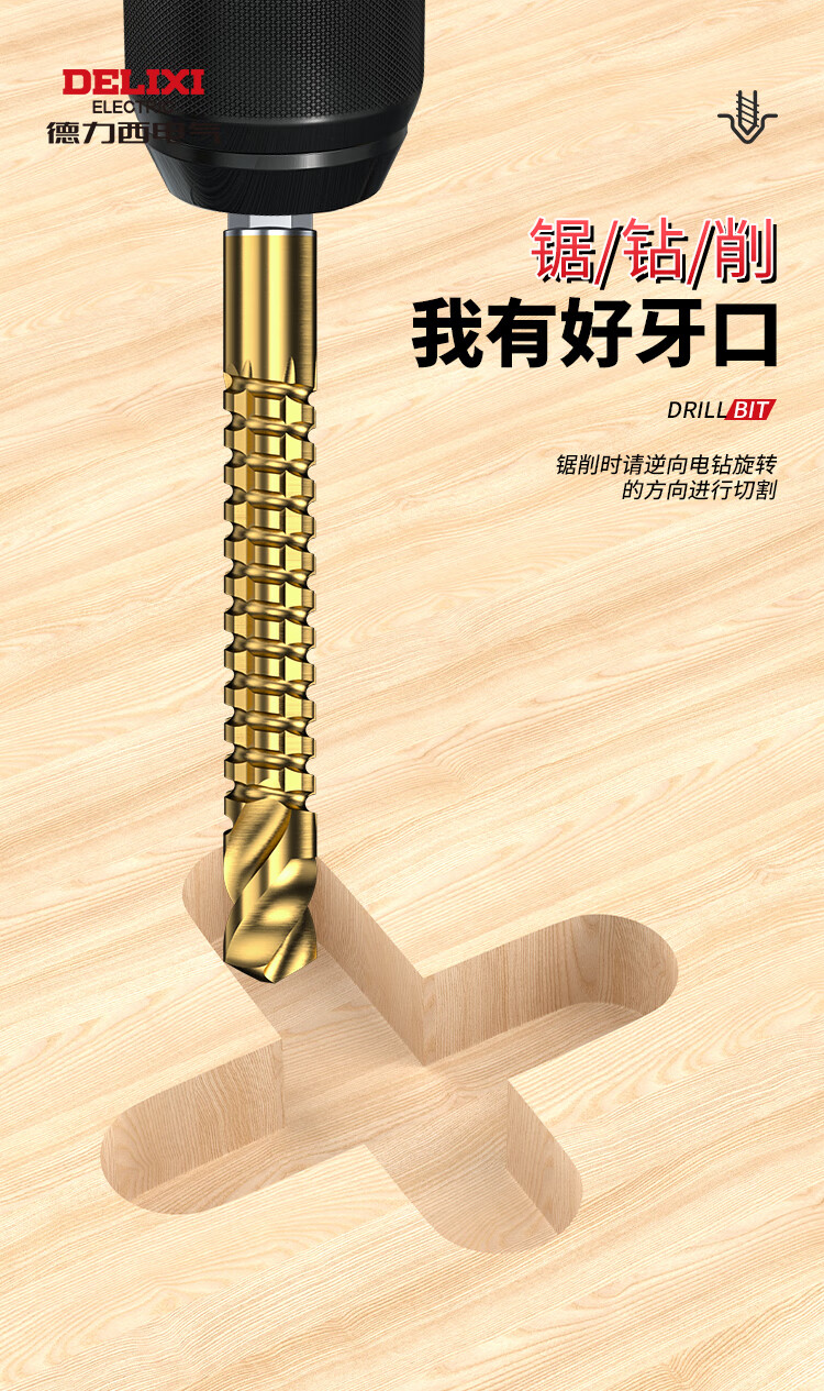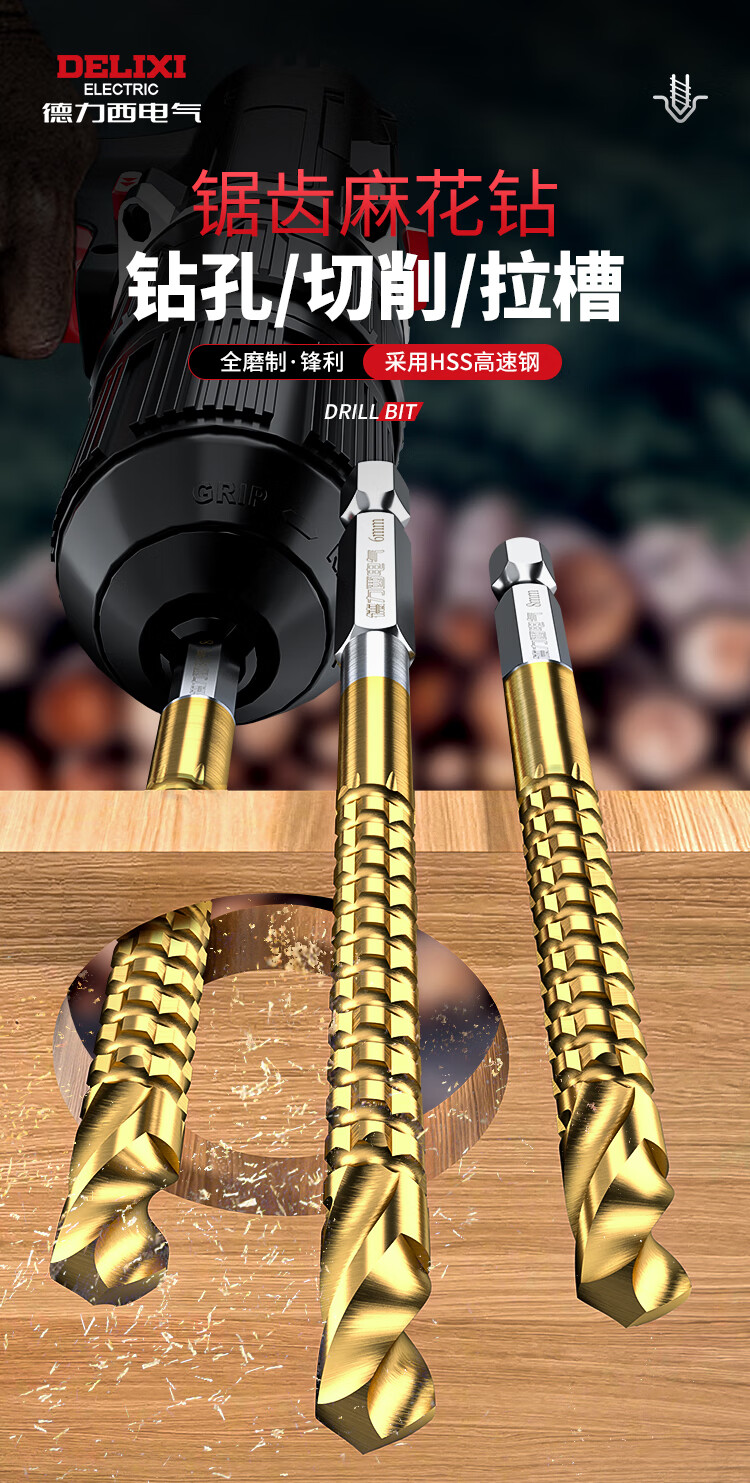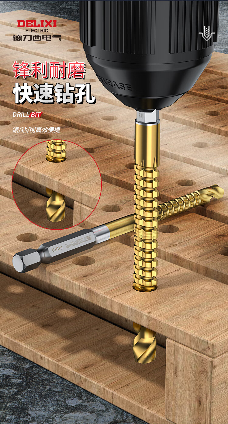 Delixi Electric sawtooth twist drill pull flower drill bit hexagonal handle woodworking special electric drill for drilling and cutting groove alloy drill sawtooth twist drill 3+4+5+6+6.5+8mm