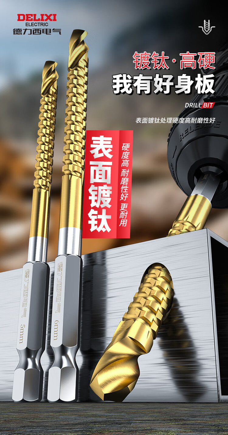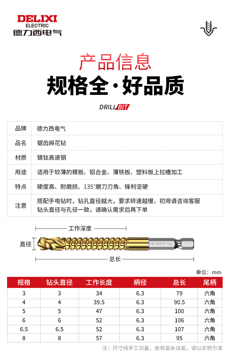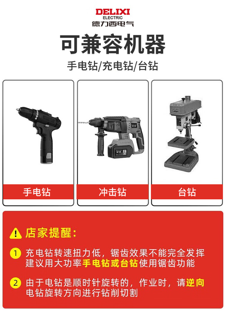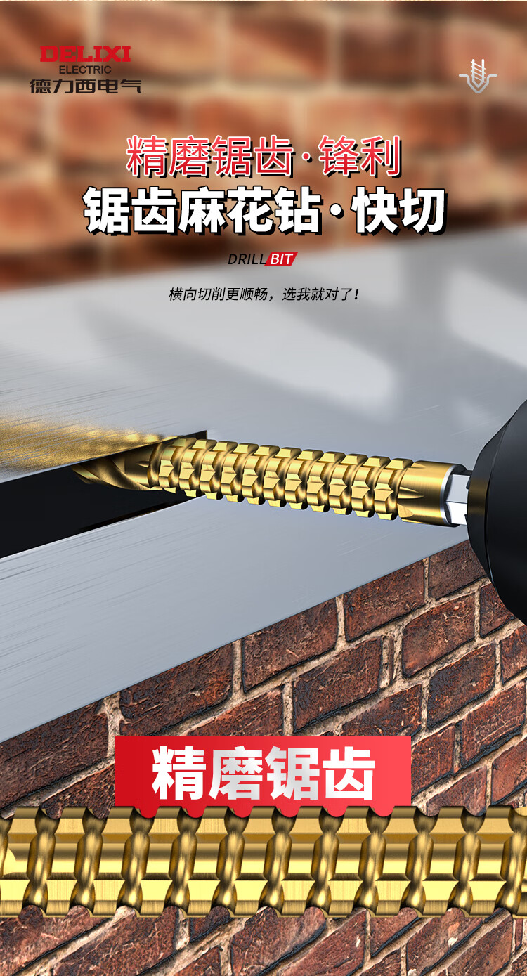 Delixi Electric sawtooth twist drill pull flower drill bit hexagonal handle woodworking special electric drill for drilling and cutting groove alloy drill sawtooth twist drill 3+4+5+6+6.5+8mm