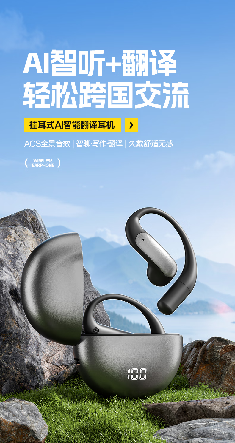 Chengruida 2025 latest AI丨simultaneous interpretation Bluetooth headset Smart headset 2025 latest ultra-long battery life call noise reduction bean bag conference translation AI headset M118 Silver丨Translation Interpretation-Multiple languages ​​Adapted to Apple Huawei Xiaomi oppo vivo