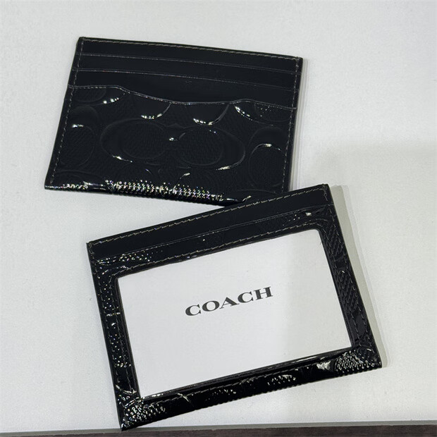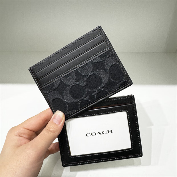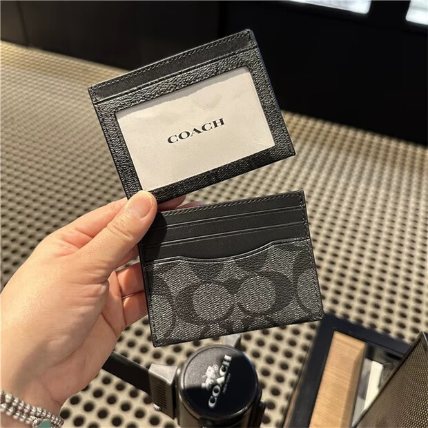 COACH Tongma Coach Unisex Small Card Holder Card Holder Simple and Space-Saving 1. Black and gray logo 10*7.5 cm