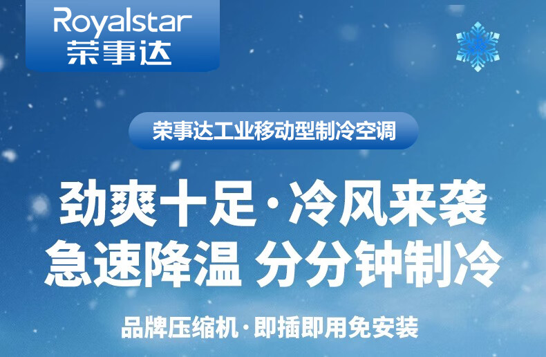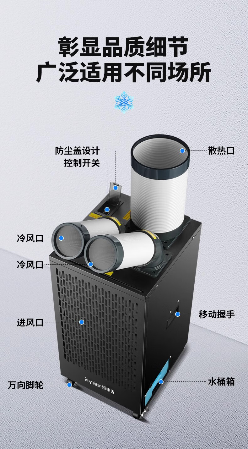 Royalstar Industrial Mobile Air Conditioning All-in-One Single Cooling Free Installation Outdoor Vertical Compressor Refrigeration Small Air Conditioner Commercial Movable Cooling Fan Factory Workshop Large Air Volume Cooler 1 HP Double Pipe 2500W Electronic Type Compressor Refrigeration