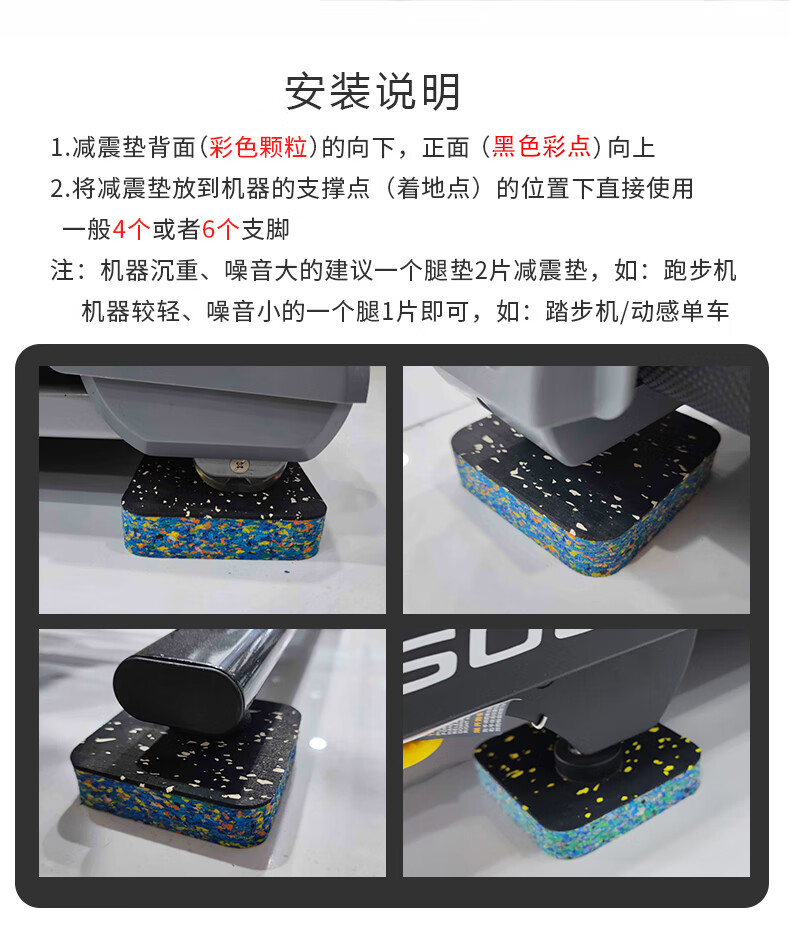 Treadmill soundproof shock-absorbing pad elliptical machine bicycle running thickened non-slip rubber mat fitness floor mat universal foot pad thickened 8-piece treadmill shock-absorbing pad