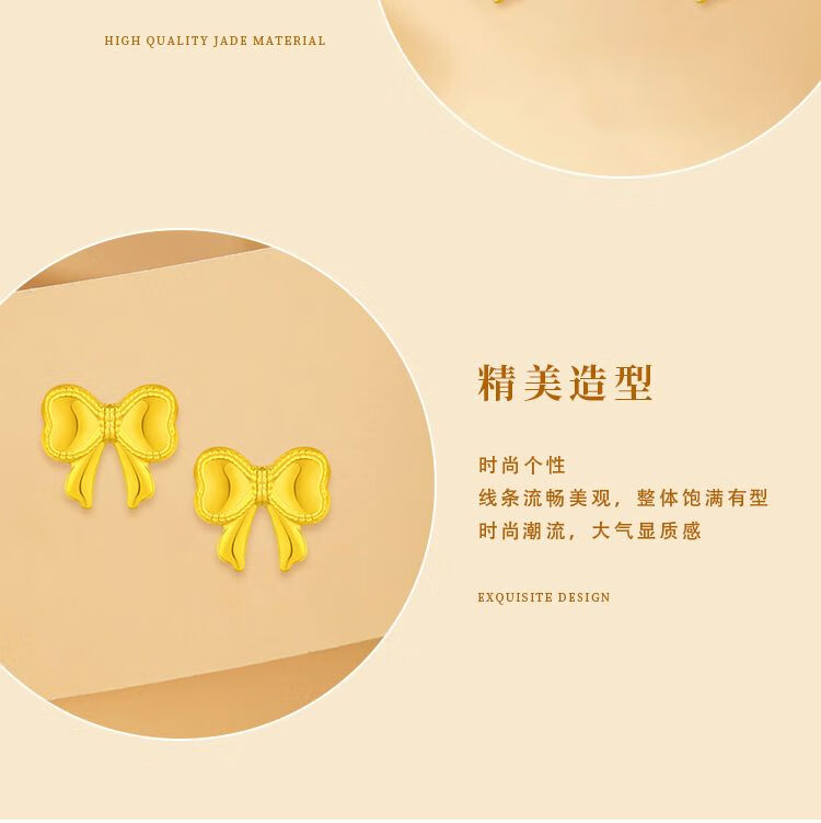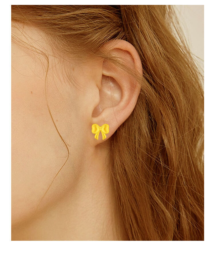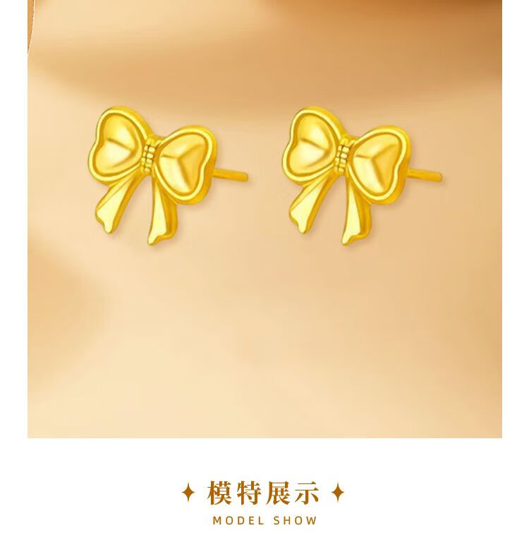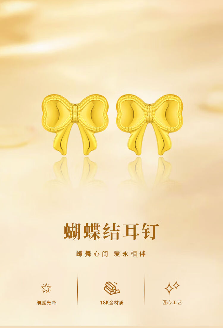 Lao Fengxiang 18k gold bow earrings for women, sweet and versatile earrings, Valentine's Day birthday gift for girlfriend and lover, 18K bow earrings 0.2g
